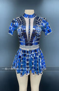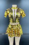 Robe de soirée courte à paillettes dorées et cristaux pour fête d'anniversaire, tenue de spectacle, de danse, grande taille