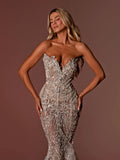 Robe de mariée sexy à décolleté en V profond, robe de mariée sirène de luxe avec perles scintillantes et cristaux, sur mesure
