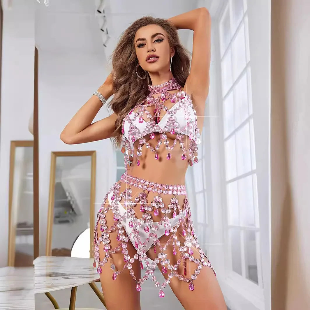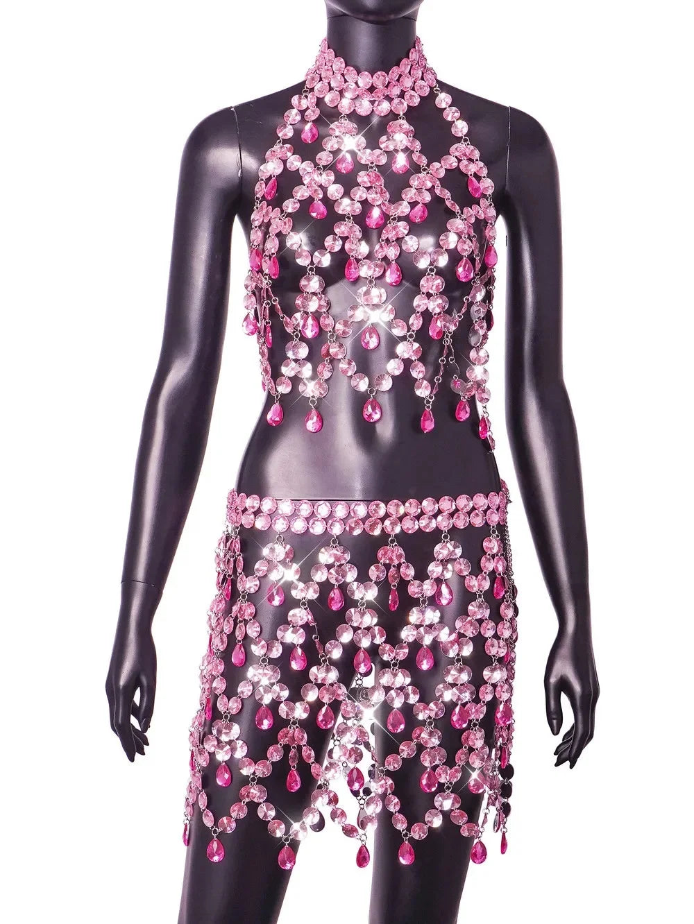 Make a statement with this Sexy Jewelry Spliced Skirt Set, a fresh new arrival inspired by European and American fashion. This stylish two-piece suit features unique jewelry-inspired splicing details, adding a touch of elegance and glamour to your look. Perfect for parties, nights out, or special occasions, this figure-flattering set is selling fast among trendsetters who want to stand out with modern, chic flair.