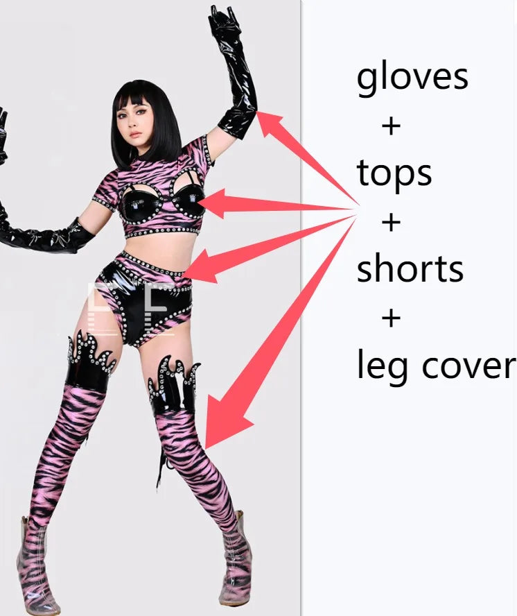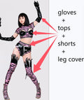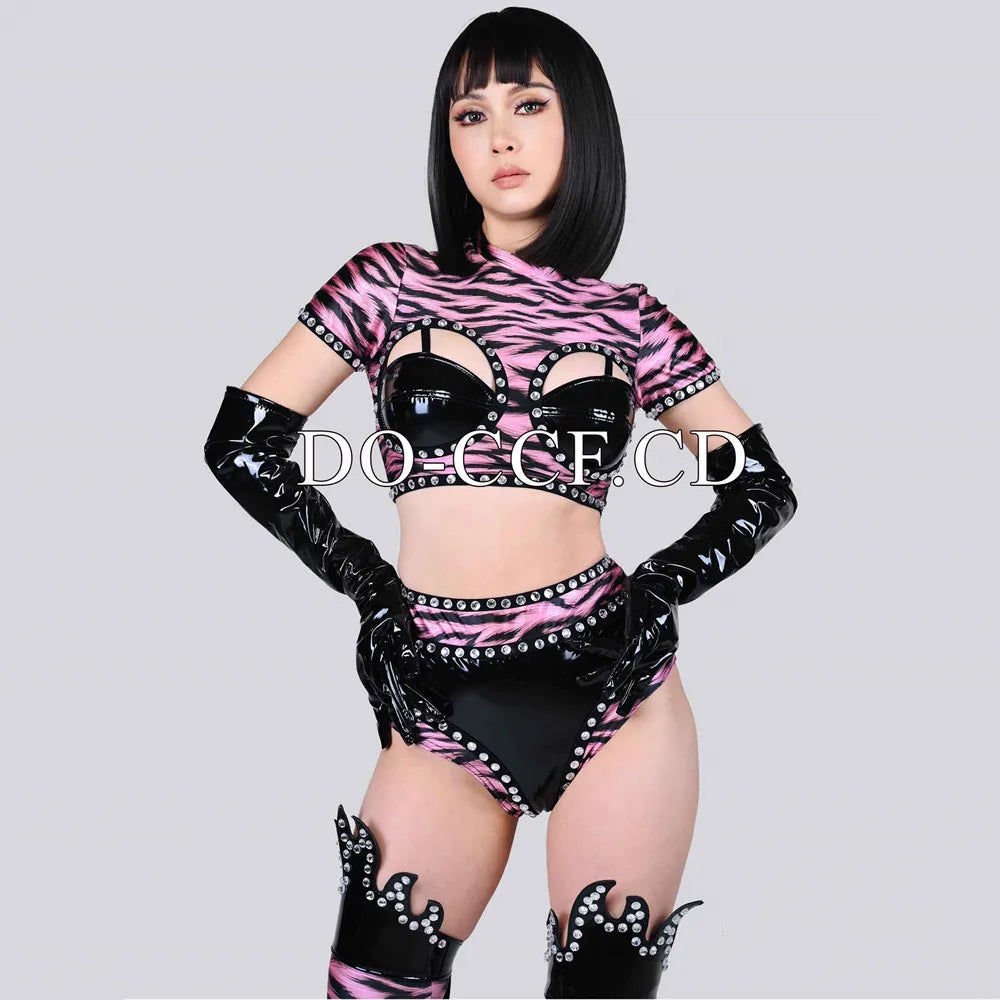 Sexy léopard cristal bikini gants en cuir couvre-jambes vêtements de performance femmes drag queen costume danseur jazz équipe scène vêtements