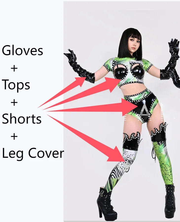 Révélez votre côté sauvage avec ce bikini léopard sexy orné de cristaux, accompagné de gants en cuir et de jambières assortis. Conçu pour les danseuses, les drag queens et les groupes de jazz, cet ensemble de scène éblouissant est orné de cristaux scintillants pour un impact maximal sous les projecteurs. Idéal pour les spectacles, les fêtes et les festivals, cet ensemble audacieux et glamour vous garantit de briller à chaque événement.