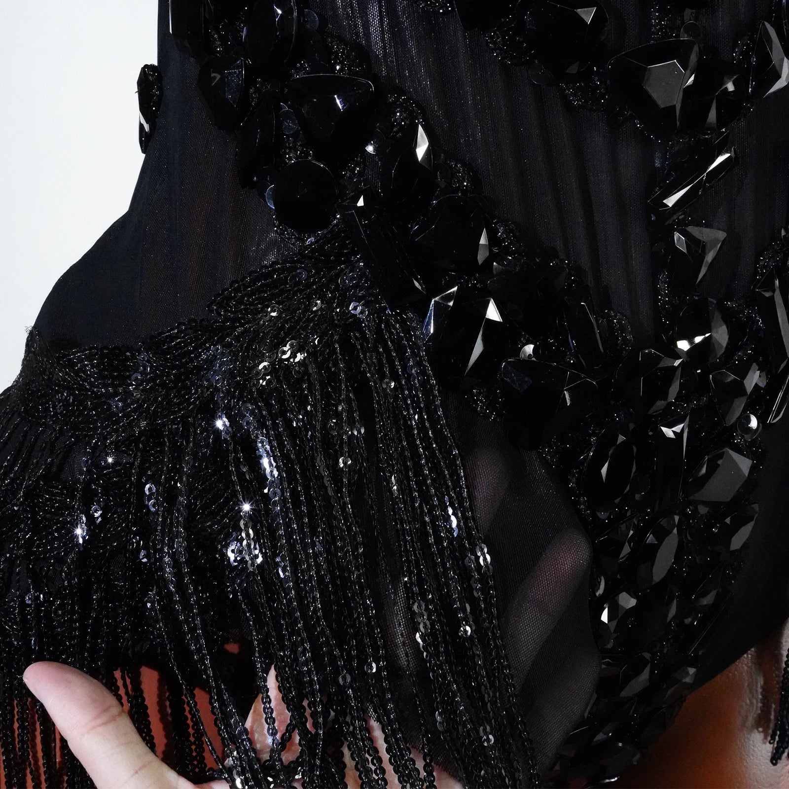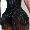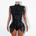 Volez la vedette avec ce body sexy en résille noire transparente, orné de strass scintillants pour un glamour absolu. Conçu pour les chanteuses, danseuses et artistes, ce costume époustouflant est parfait pour les apparitions sur scène, les fêtes et les soirées en boîte de nuit. Sa coupe moulante et son design audacieux et transparent vous permettent d'exprimer votre assurance et votre style tout en attirant tous les regards. Rendez votre prochaine représentation inoubliable avec cette pièce éclatante.