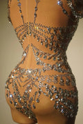 Tenue de danse sexy en maille transparente avec strass scintillants pour femme, tenue de spectacle, de chanteur, de fête, de club, de scène