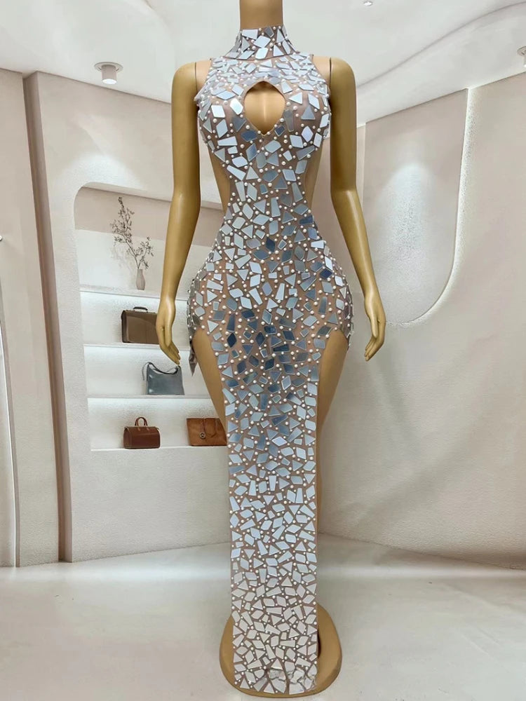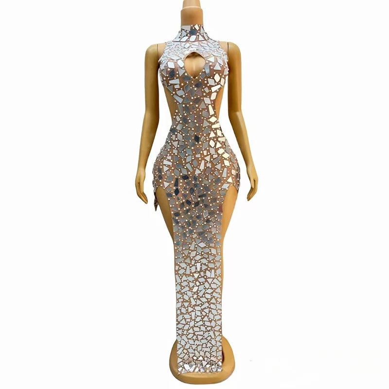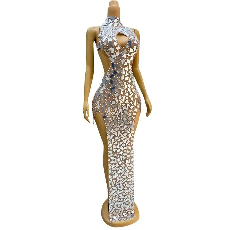 Turn heads in this sexy neck skirt evening dress, expertly designed for maximum impact at concerts, tango dance performances, or the model catwalk. The elegant white fabric is beautifully embellished with sparkling rhinestones, creating a radiant look that catches every light. Perfect for any special event or stage appearance, this stunning dress combines refined glamour with show-stopping appeal—guaranteeing you’ll shine wherever you go.