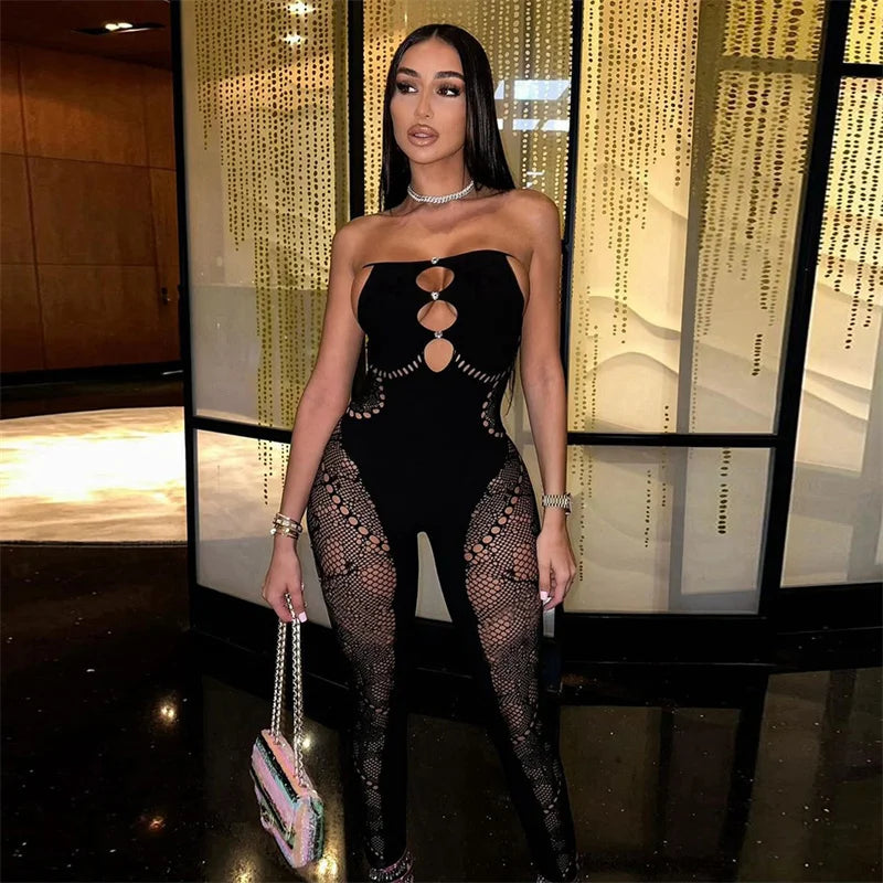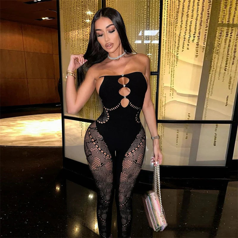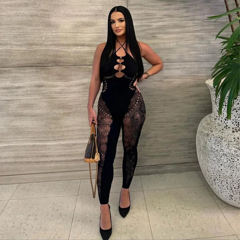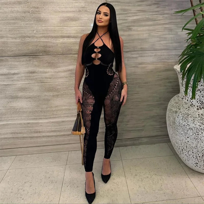 Sexy Outfits Hollow Out Yoga Jumpsuits Women Sleeveless Backless Bodycon Rompers Jumpsuit Pink One-piece Black Overalls