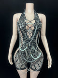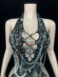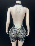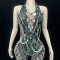 Body sexy dos nu sans manches avec chaîne et perles pour femme, tenue de soirée, de spectacle, de scène, de discothèque