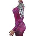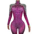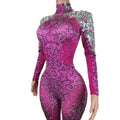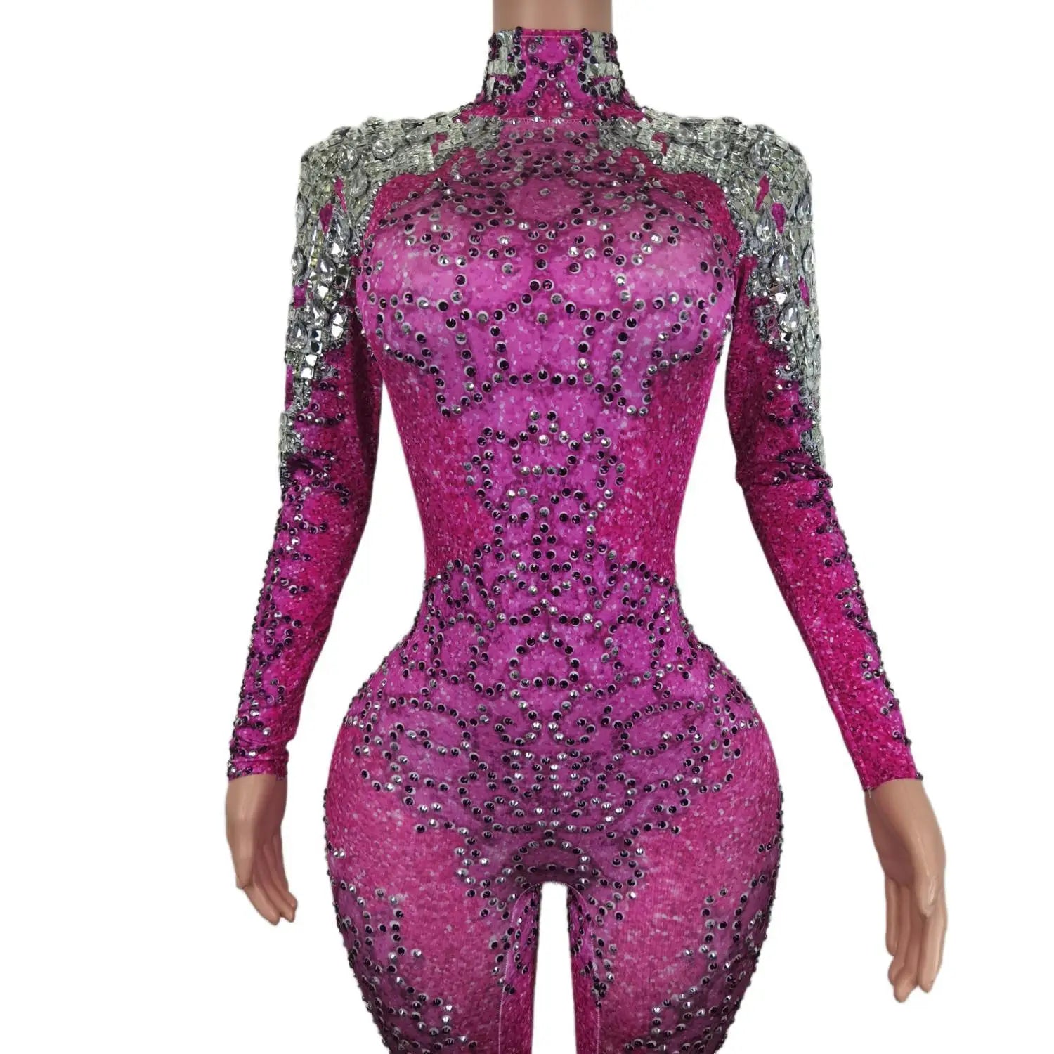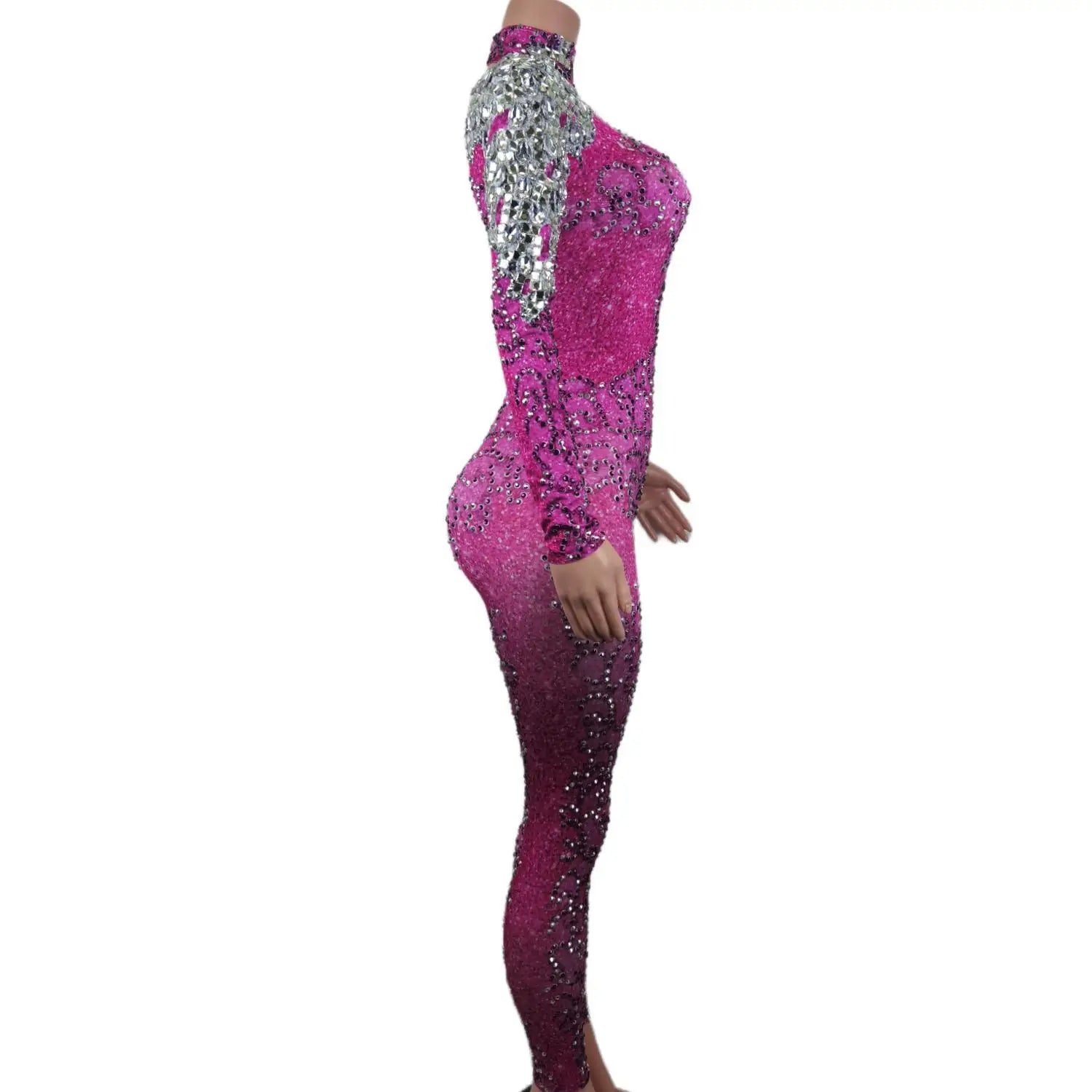Steal the spotlight in this sexy pink one-piece bodysuit, featuring a high neckline and daring backless design. Embellished with shining rhinestones, this bodycon jumpsuit offers a glamorous, figure-hugging fit—perfect for performances, parties, proms, and any occasion where you want to stand out. Designed for confident women who love to sparkle, this show-stopping costume ensures you shine with every move.