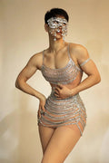 Mini-robe scintillante à strass pour pole dance, robe de soirée sans manches pour fêtes, anniversaires et bals de fin d'année