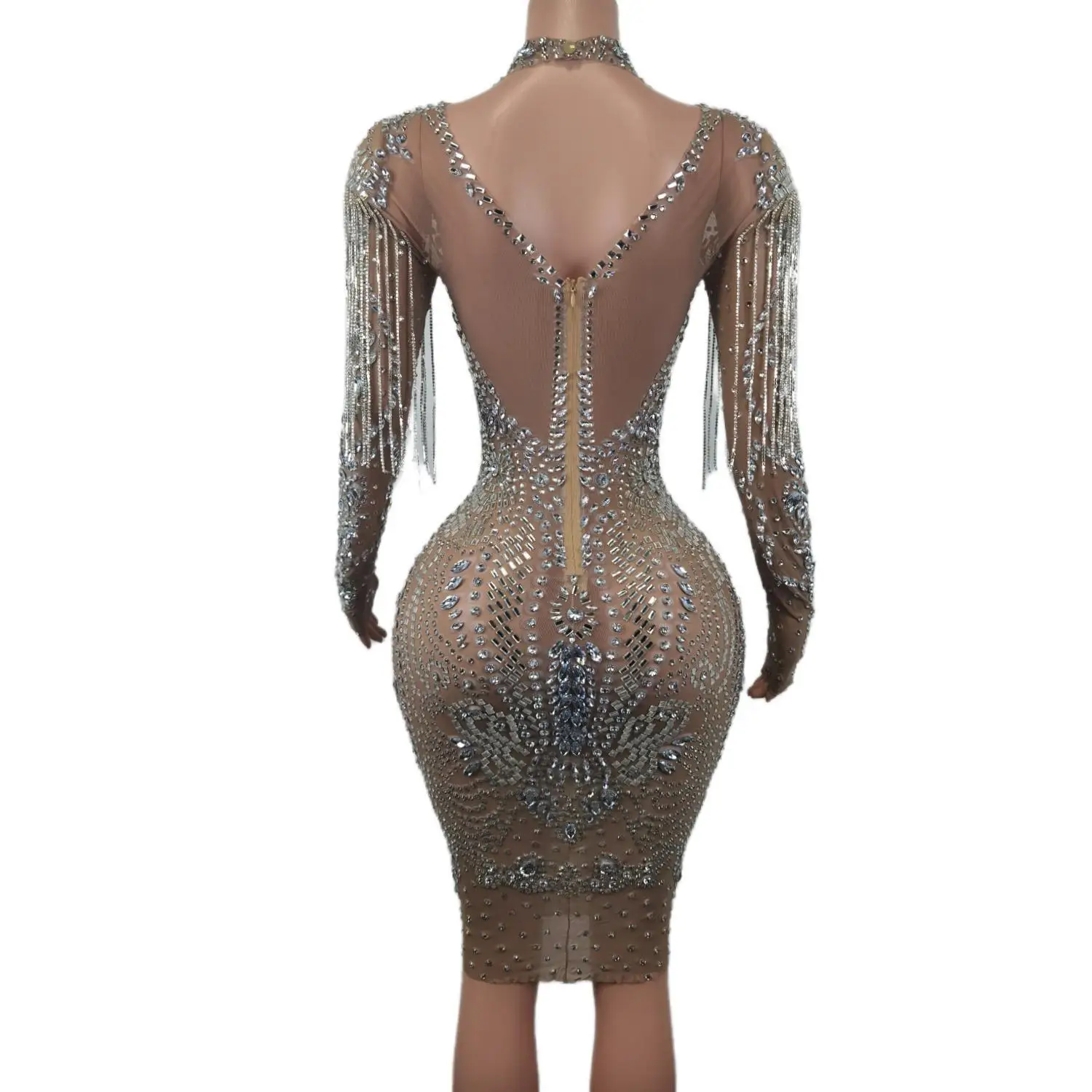 Robe sexy transparente à strass pour femmes, robe de cocktail d'anniversaire, robe de soirée, mini robe de bal courte noire pour filles
