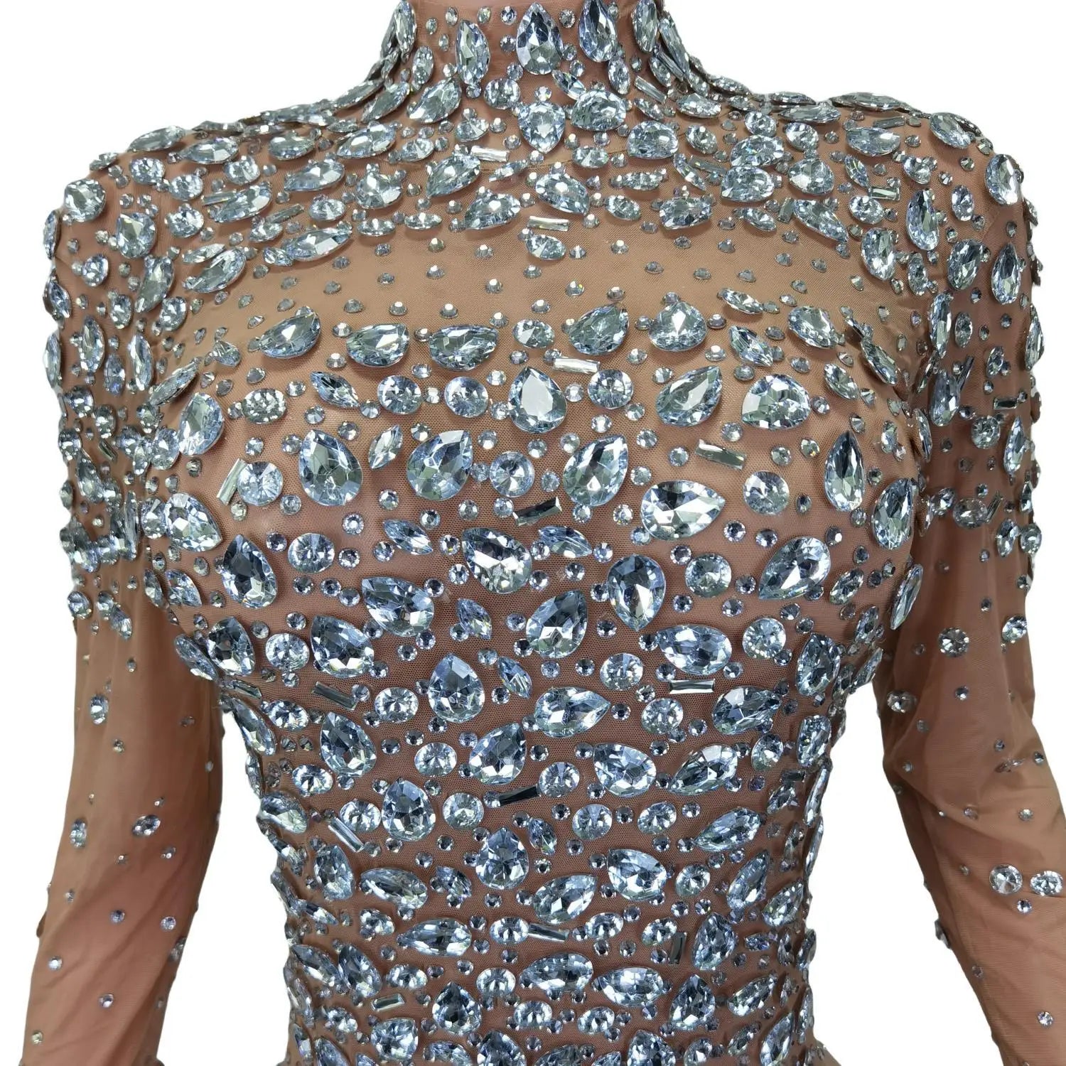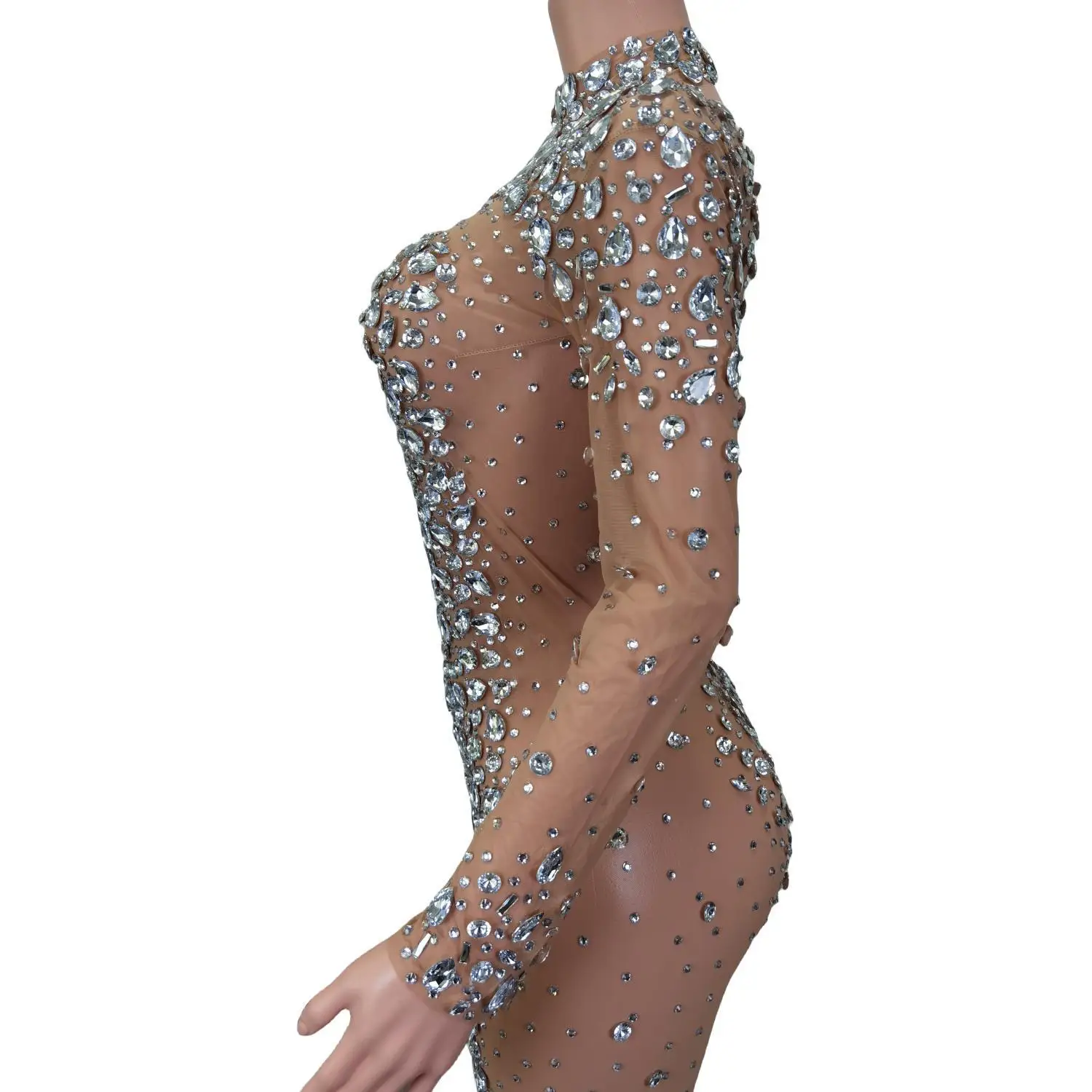 Superbe robe longue transparente ornée de strass pour femme - Parfaite pour les anniversaires, les cocktails, les mariages et les représentations sur scène