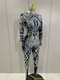 Sexy Shiny Silver Sequins Mirror Black Spandex Jumpsuit Women Prom Dancer Singer Costume Evening Birthday Show Stage Outfit