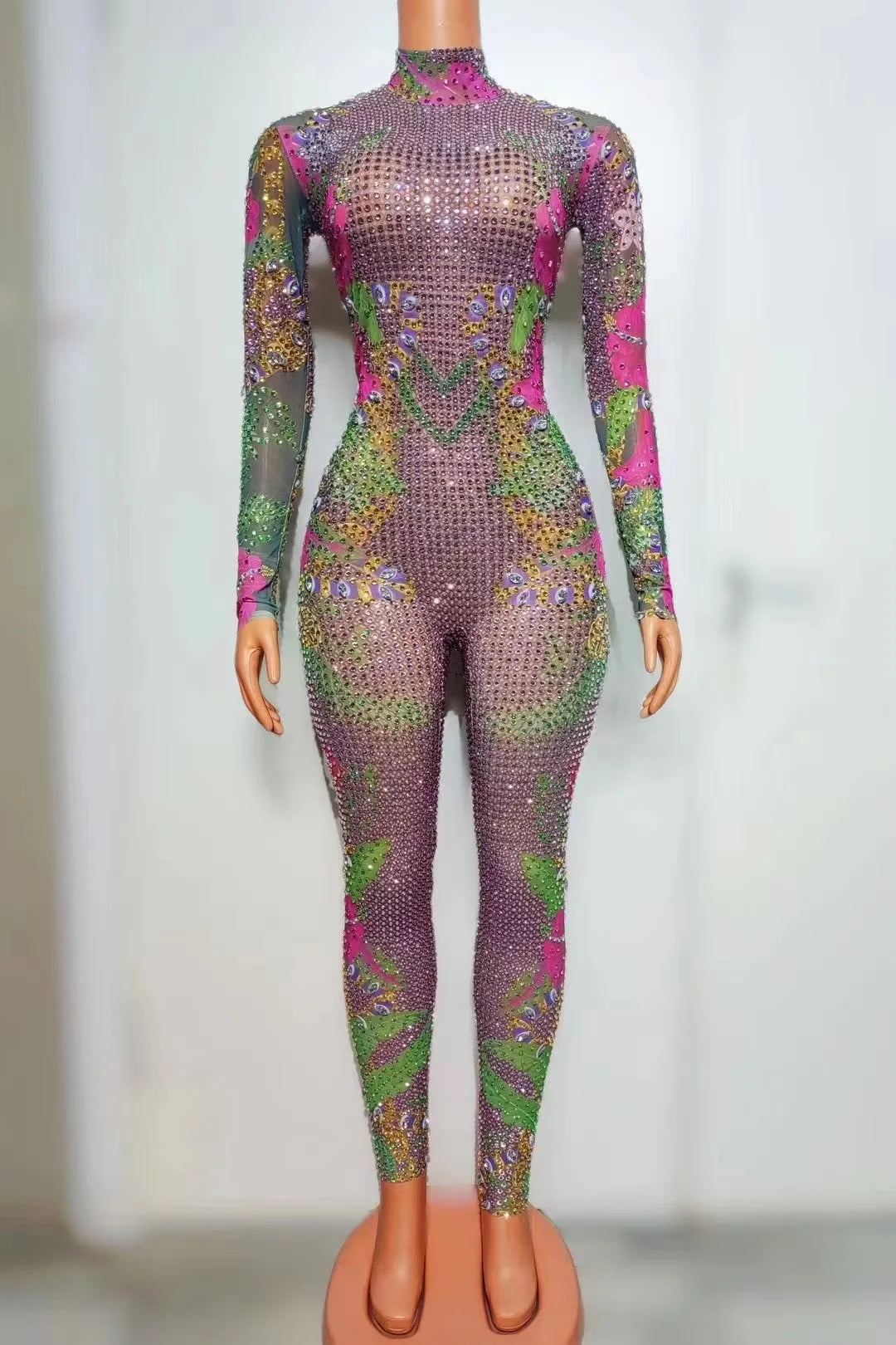 Make a dazzling impression in this Sexy Sparkly Full Rhinestone Jumpsuit, crafted with an intricate hot drilling process for maximum brilliance. Covered in vibrant, multi-color rhinestones, this eye-catching one-piece is perfect for women who want to stand out at pole dance performances, beauty pageants, drag shows, or club events. The figure-hugging fit and bold sparkle ensure you command the stage and radiate confidence at every appearance. Embrace the spotlight in this unforgettable jumpsuit designed for show-stopping moments.