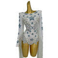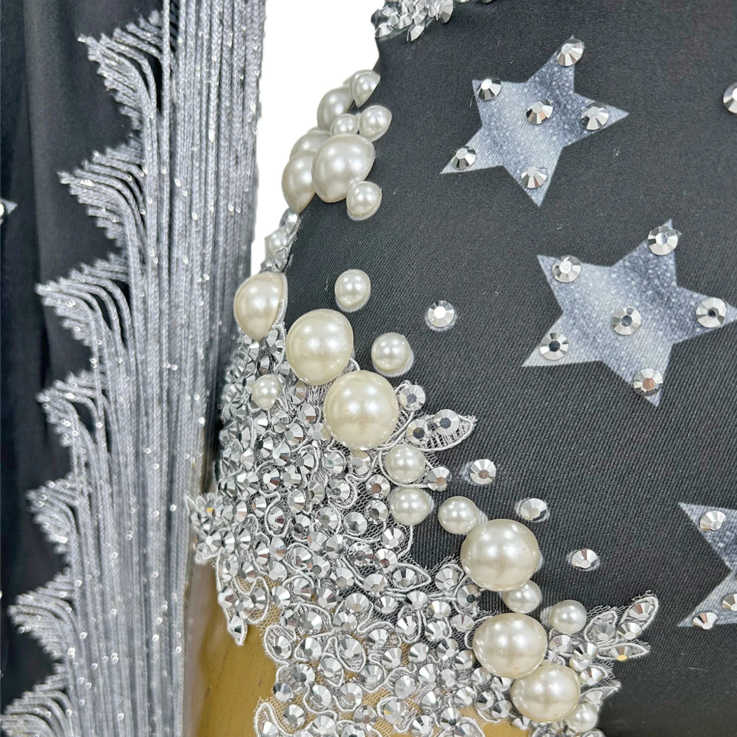 Dazzle the crowd in this sexy, sparkly bodysuit adorned with luminous pearls, shimmering rhinestones, and playful tassels. Featuring eye-catching prints and a flattering fit, this statement costume is perfect for bar performances, nightclub shows, evening parties, and stage wear. Designed to sparkle under the lights, it guarantees all eyes on you—adding elegance, movement, and bold style to every performance.