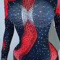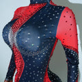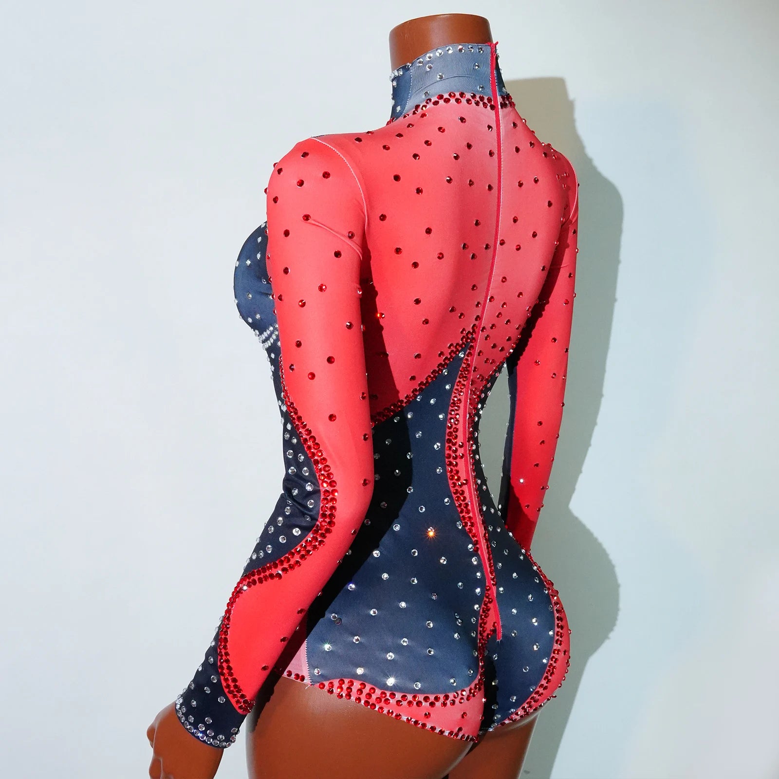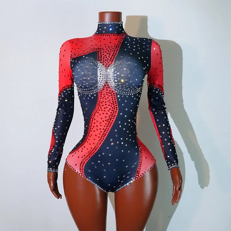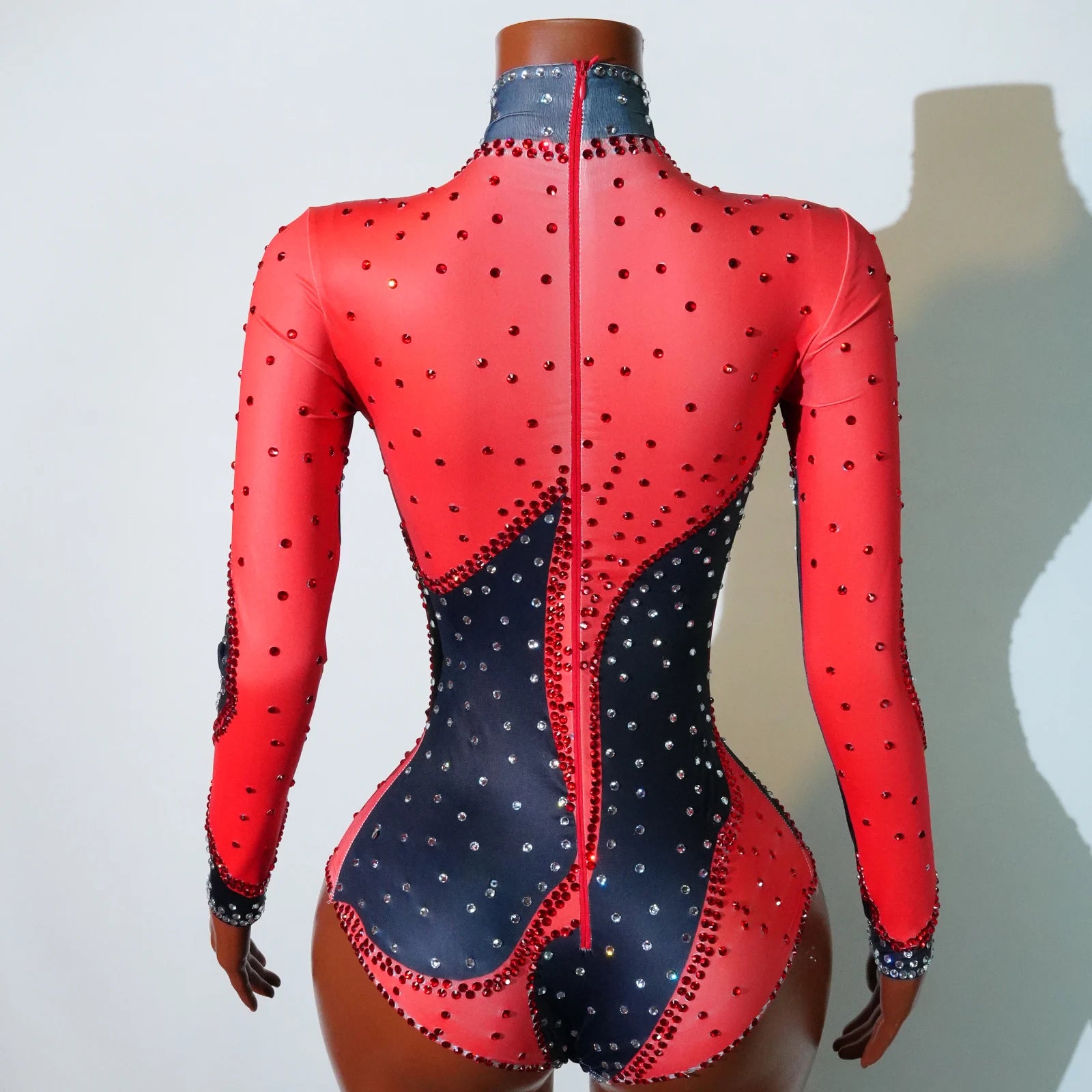 Body rouge sexy à strass scintillants, extensible, pour soirée, chanteuse, danse, pôle, discothèque, drag queen, tenue de soirée, discothèque, scène