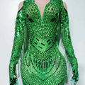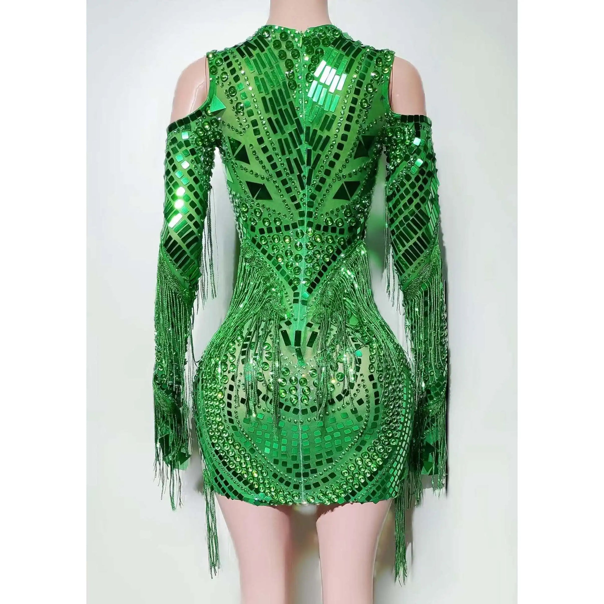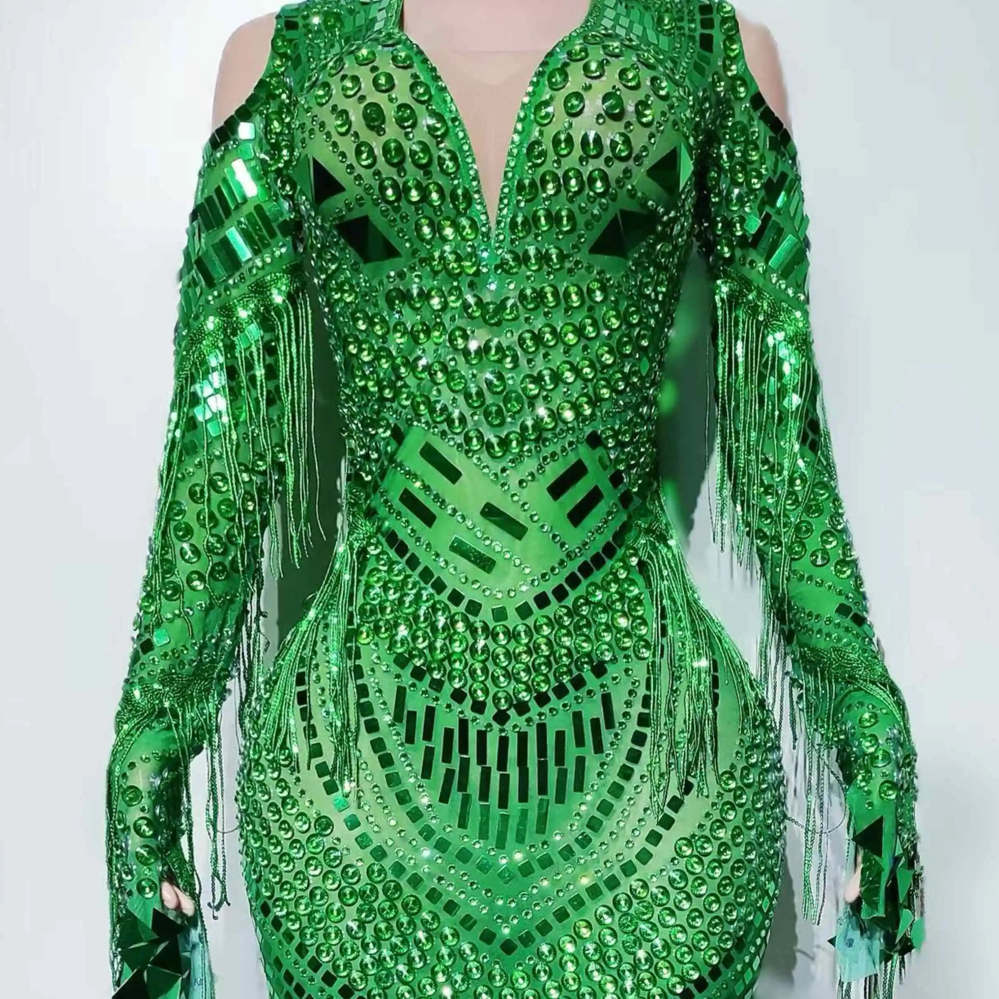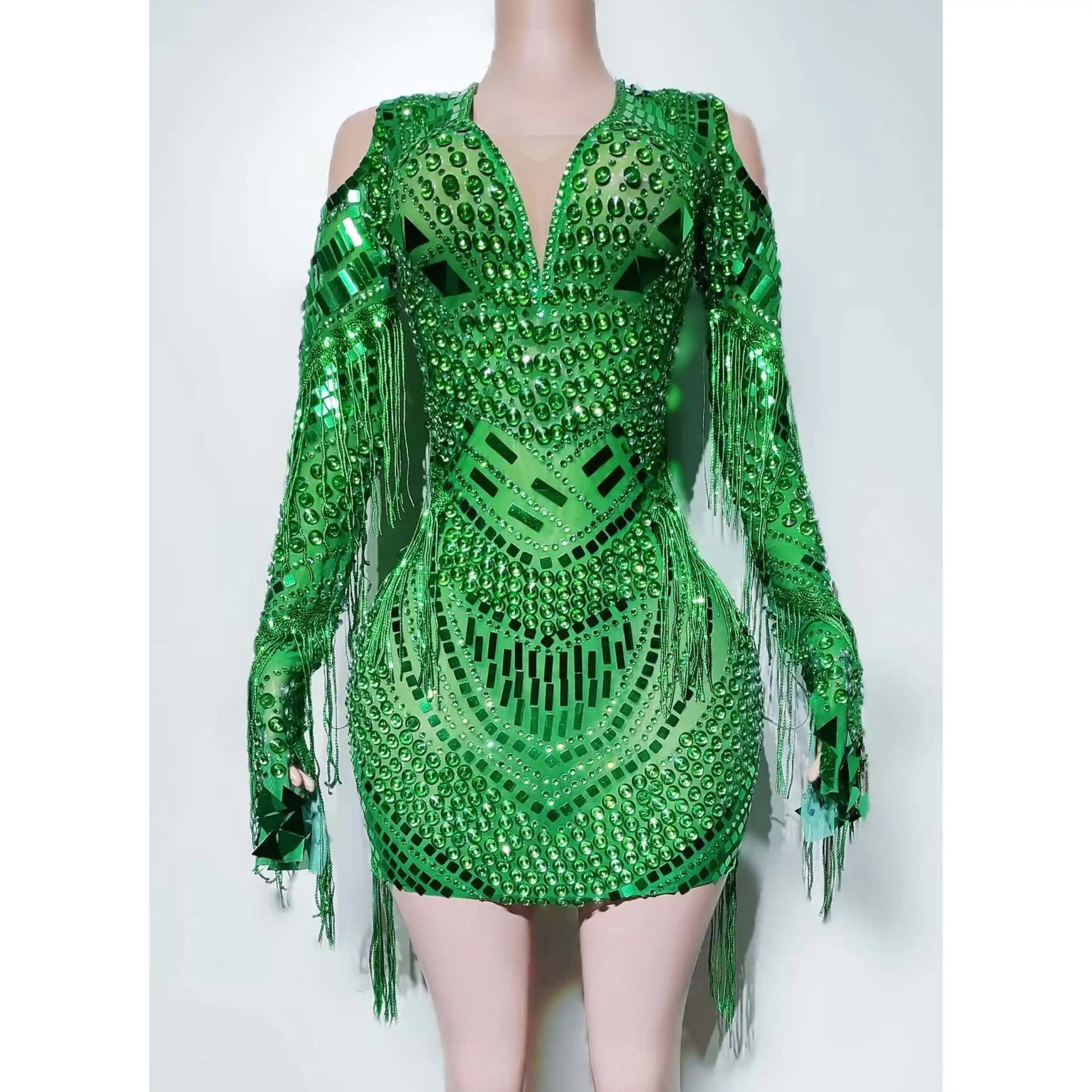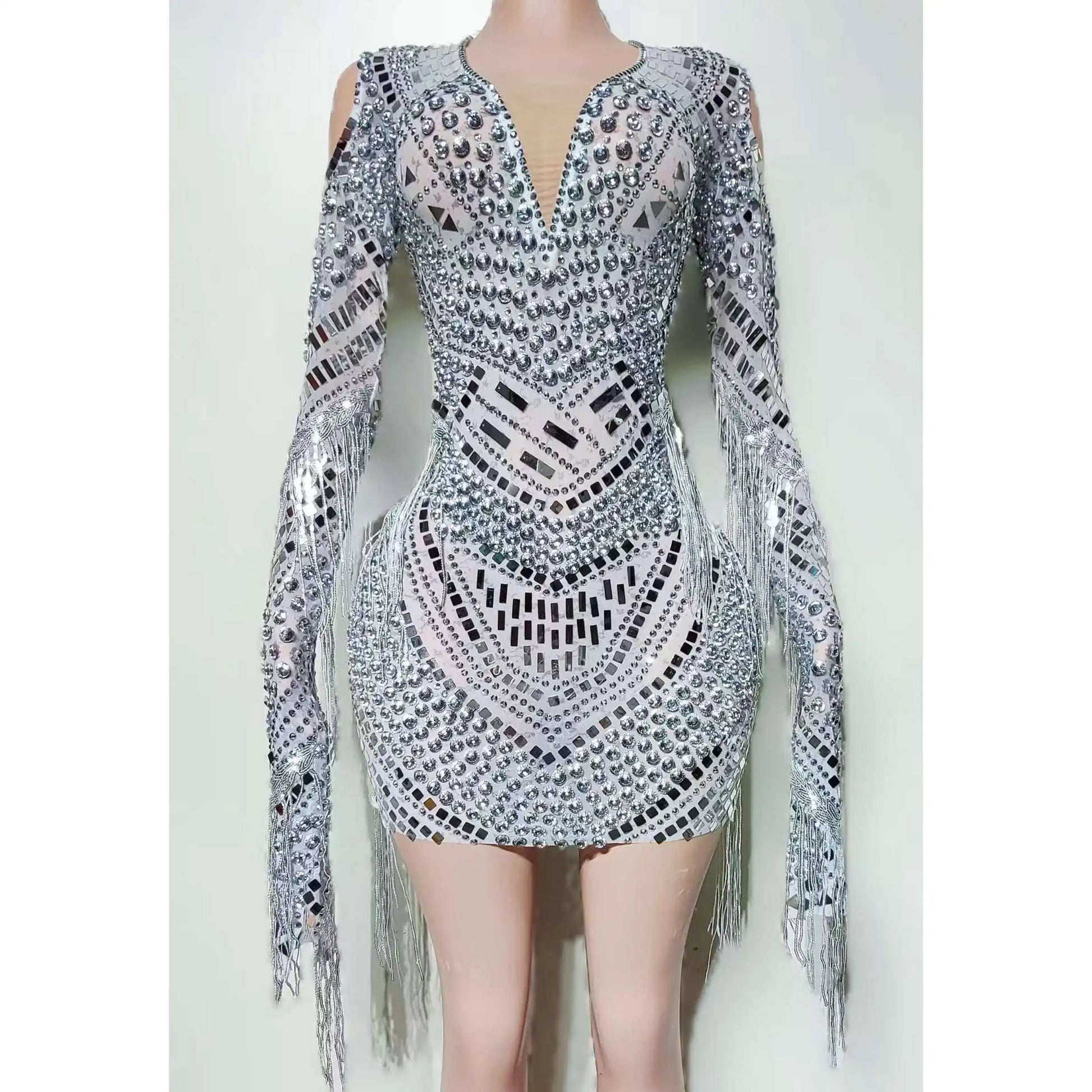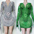 Sexy Tassels Full Diamond V-neck Dress Nightclub Bar Dj Gogo Dancers Stage Dress Female Singer Stage Performance Costume