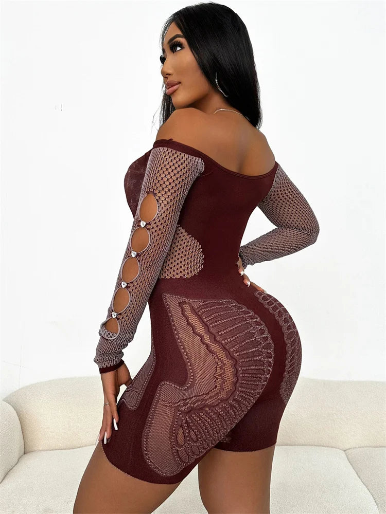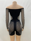 Combinaisons une pièce sexy pour femmes, combinaisons ajourées, moulantes noires à manches longues, combinaisons