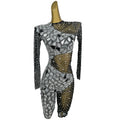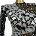 Turn heads at any club, party, or special event in this dazzling black mesh bodysuit for women. Crafted with seductive see-through fabric, the catsuit features sparkling rhinestone and mirror embellishments throughout, hugging your curves in all the right places. Its tight-fitting design ensures a bold, glamorous look, perfect for nightlife, shows, and unforgettable nights out.