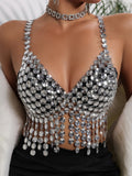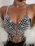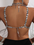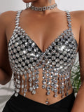 Sexy Y2k Clothes Metal Rhinestone Corset Crop Top Women Summer Body Beach Halter Tank Top See Through Nightclub Party Tops Bra