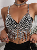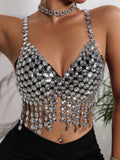 Make a bold statement with this Sexy Y2K Metal Rhinestone Corset Crop Top. Designed for women who love standout summer style, this see-through halter tank top features sparkling rhinestone details and a sleek metal corset design. Perfect for the beach, nightclub parties, or any night out, this body-hugging bra top exudes confidence and glamour for unforgettable Y2K-inspired outfits. Model Show - Silver