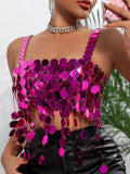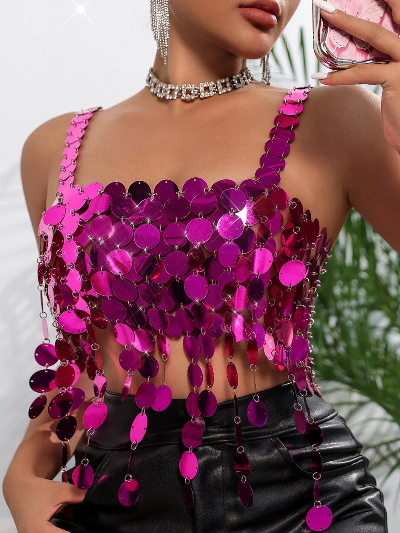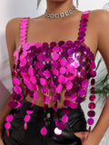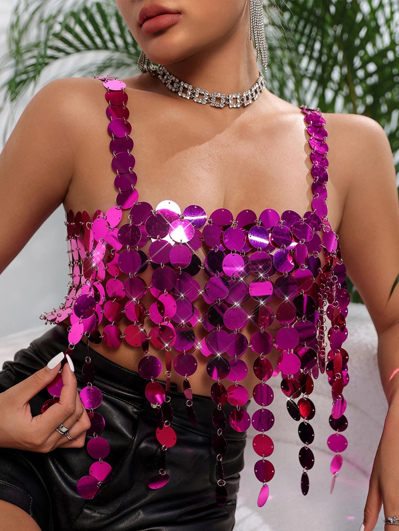 Bring bold Y2K vibes to your next night out with this dazzling metal sequin corset crop top. Designed for women who love to stand out, this summer tank top features a sexy see-through look, shimmering metallic sequins, and a form-flattering corset style. Perfect for the beach, club parties, or music festivals, this statement piece combines sultry glam with festival-ready fashion, ensuring you turn heads wherever you go. Pair it with your favorite jeans or a mini skirt for an unforgettable, on-trend outfit.