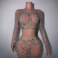 Shining Diamonds Prom Gown Pearl Transparent Top Skirt Set Birthday Celebrate Dress Prom Party Costume