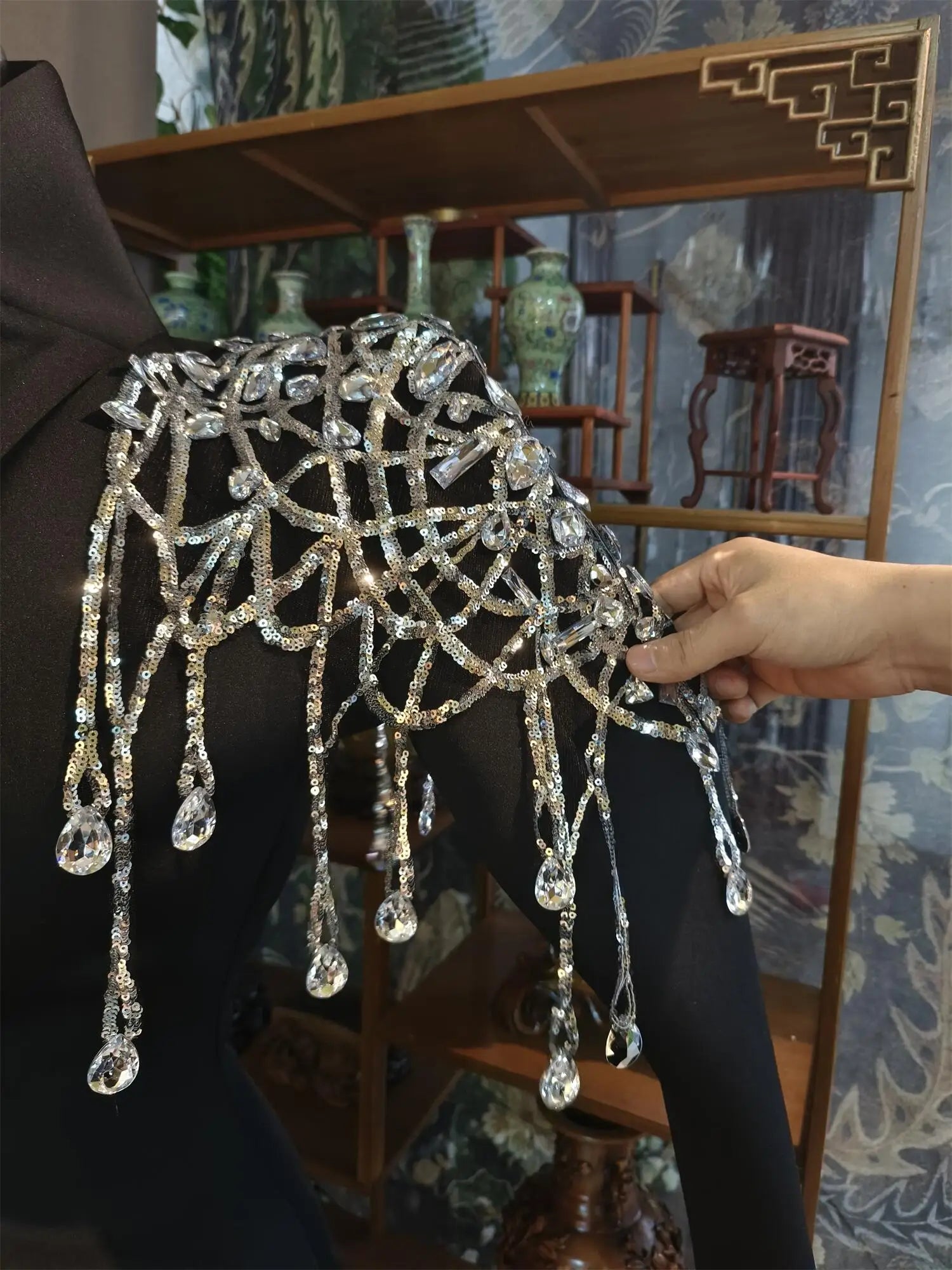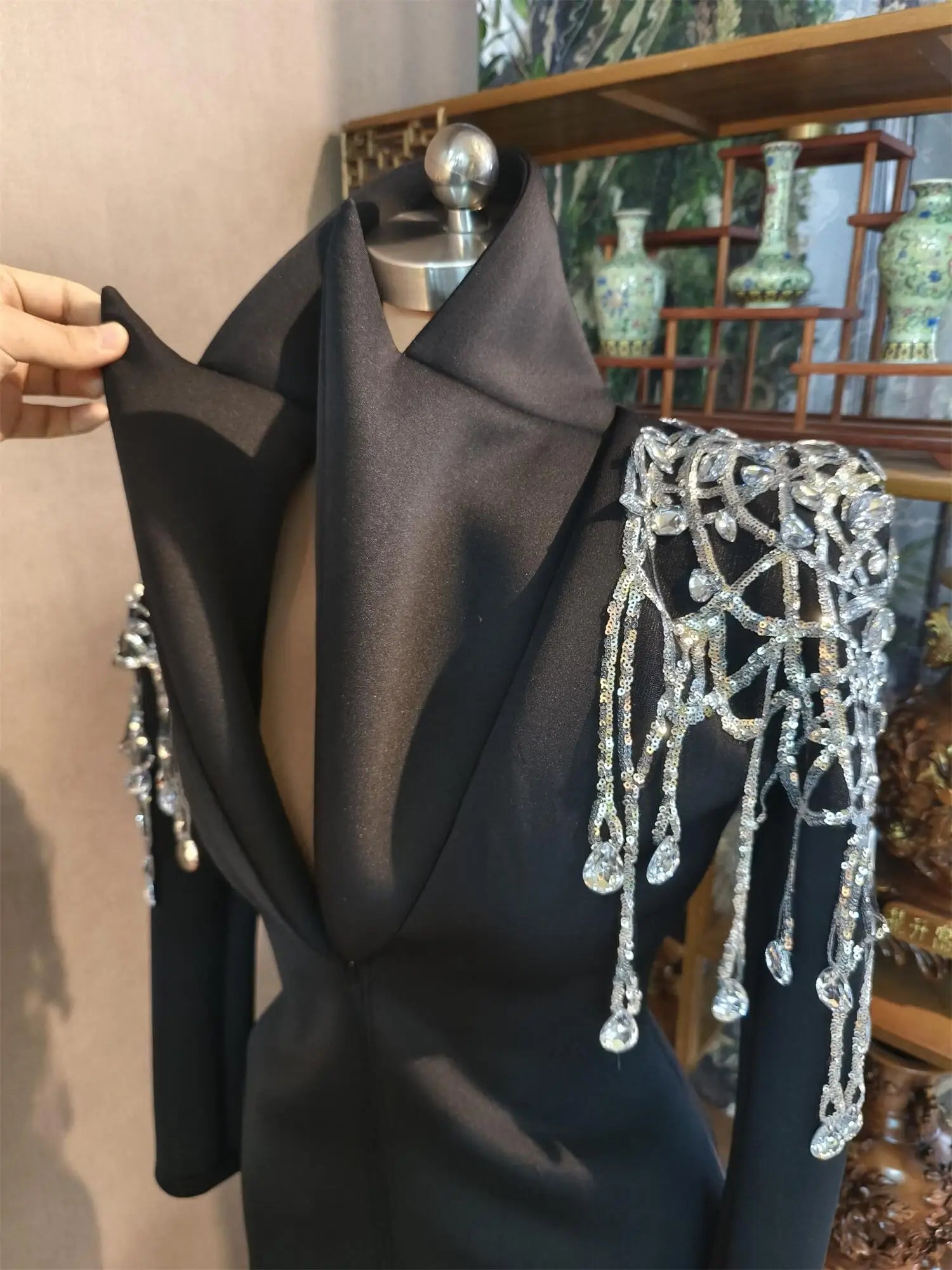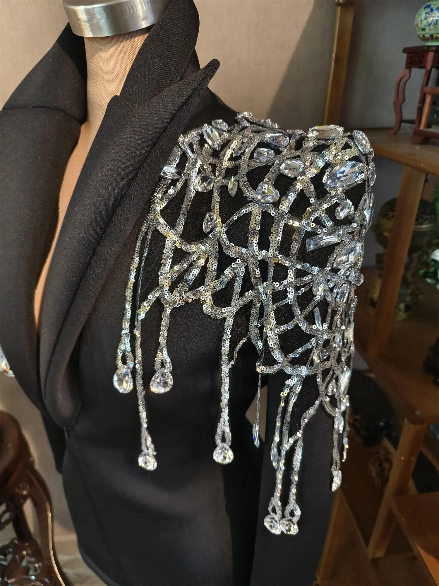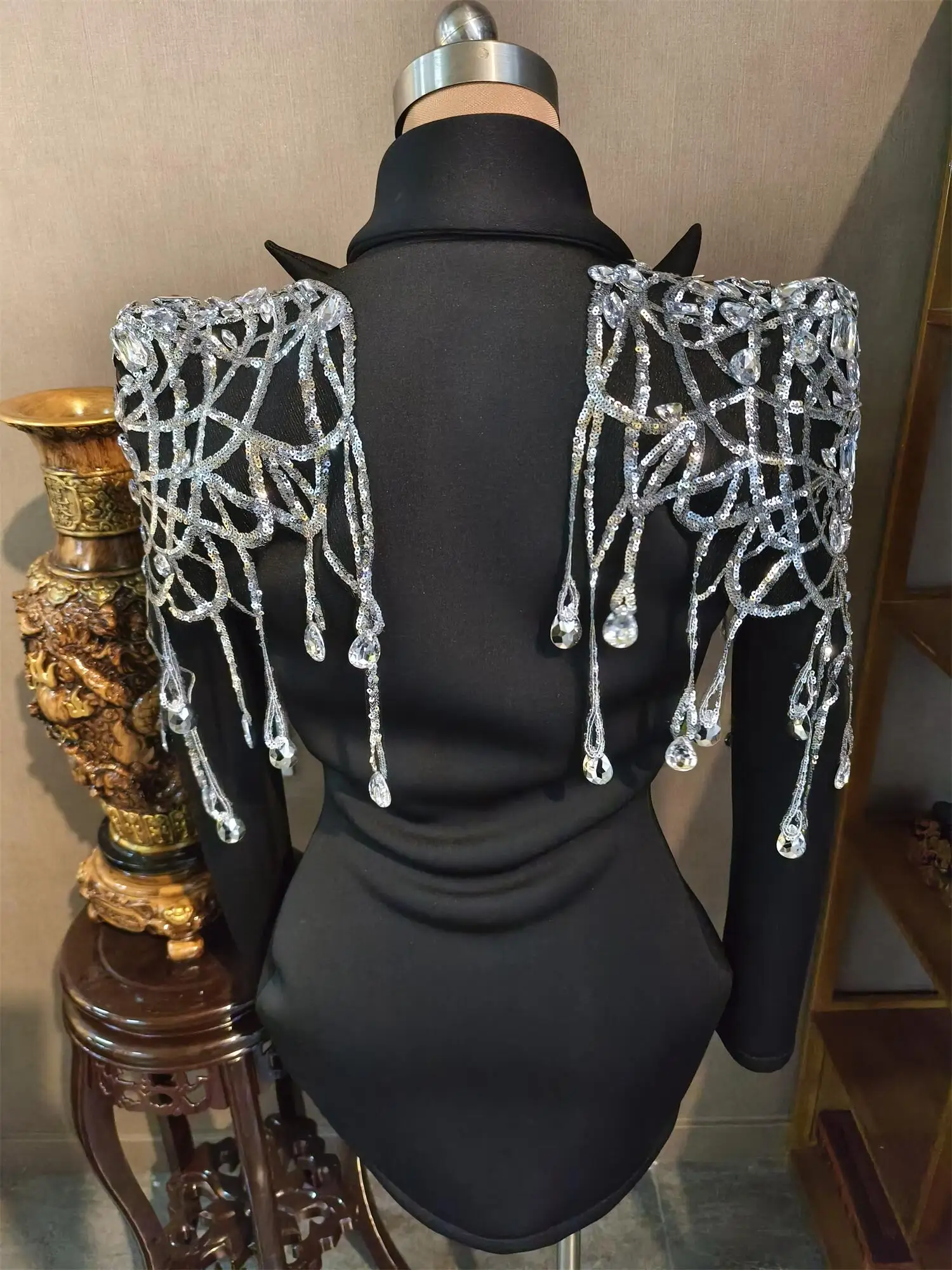 Veste en cristal à paillettes brillantes, tenue de scène sexy, robe de DJ, de chanteur, de bar, de discothèque, de jazz, de spectacle, Xizhuang