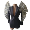 Veste en cristal à paillettes brillantes, tenue de scène sexy, robes de bar, de chanteur, de DJ, de discothèque, de jazz, de spectacle