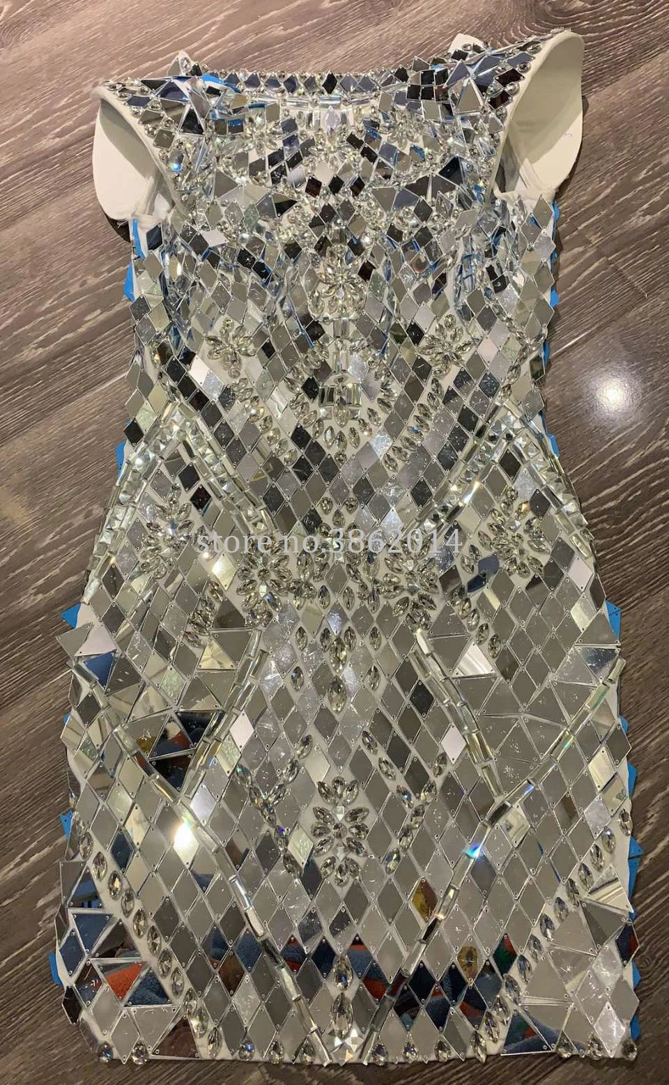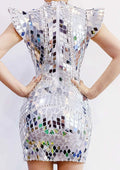 Éblouissez en toute occasion avec cette robe argentée scintillante ornée de miroirs et de cristaux. Conçue pour les femmes qui souhaitent se démarquer, cette robe de soirée glamour est ornée de cristaux et de paillettes scintillantes. Elle est parfaite pour les anniversaires, les fêtes, les mariages ou les occasions spéciales. Sa silhouette sexy et moulante, ainsi que ses détails réfléchissants accrocheurs, en font un costume idéal pour les spectacles de danse ou toute autre occasion où tous les regards se tourneront vers vous.