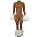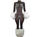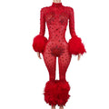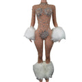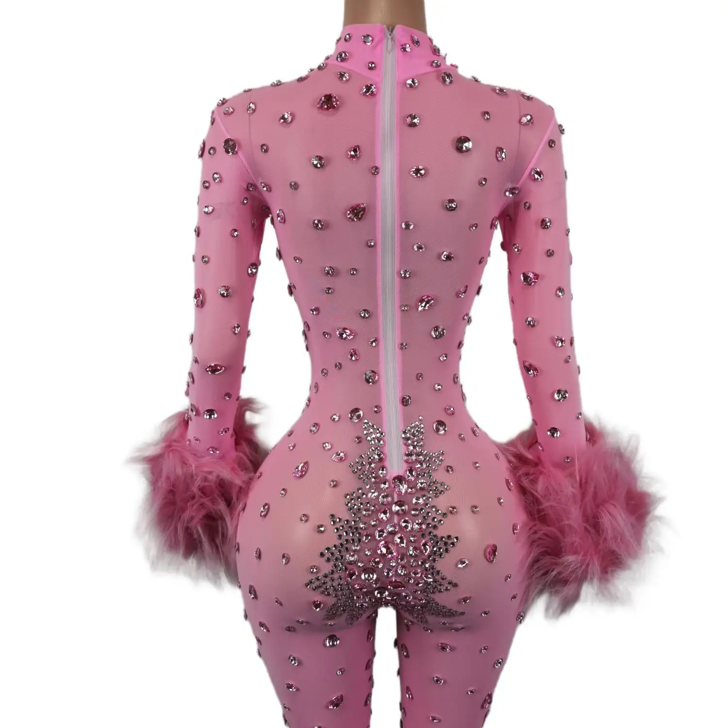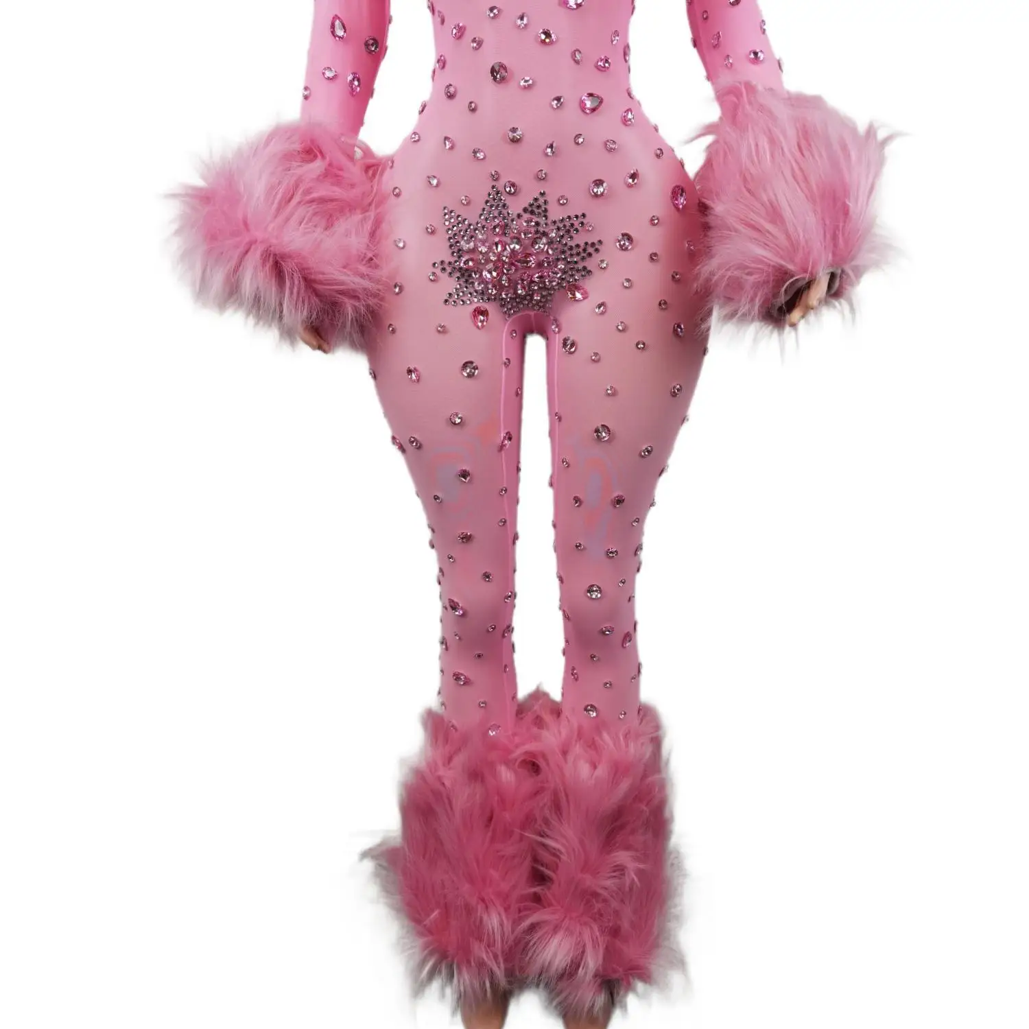 Combinaison transparente en maille rose brillante, tenue d'anniversaire sexy et poilue, costume de danseuse et de chanteuse, tenue de scène