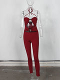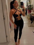 Combinaison moulante sans manches ajourée pour femme, tendance, avec boucle en métal, dos nu, salopette sexy pour soirée et club