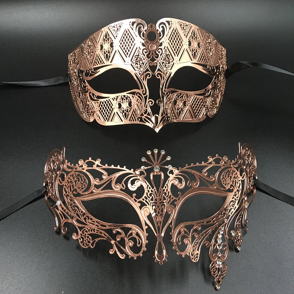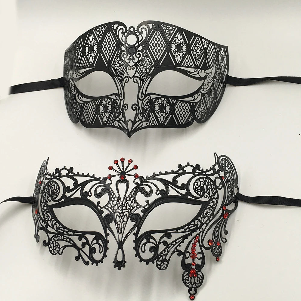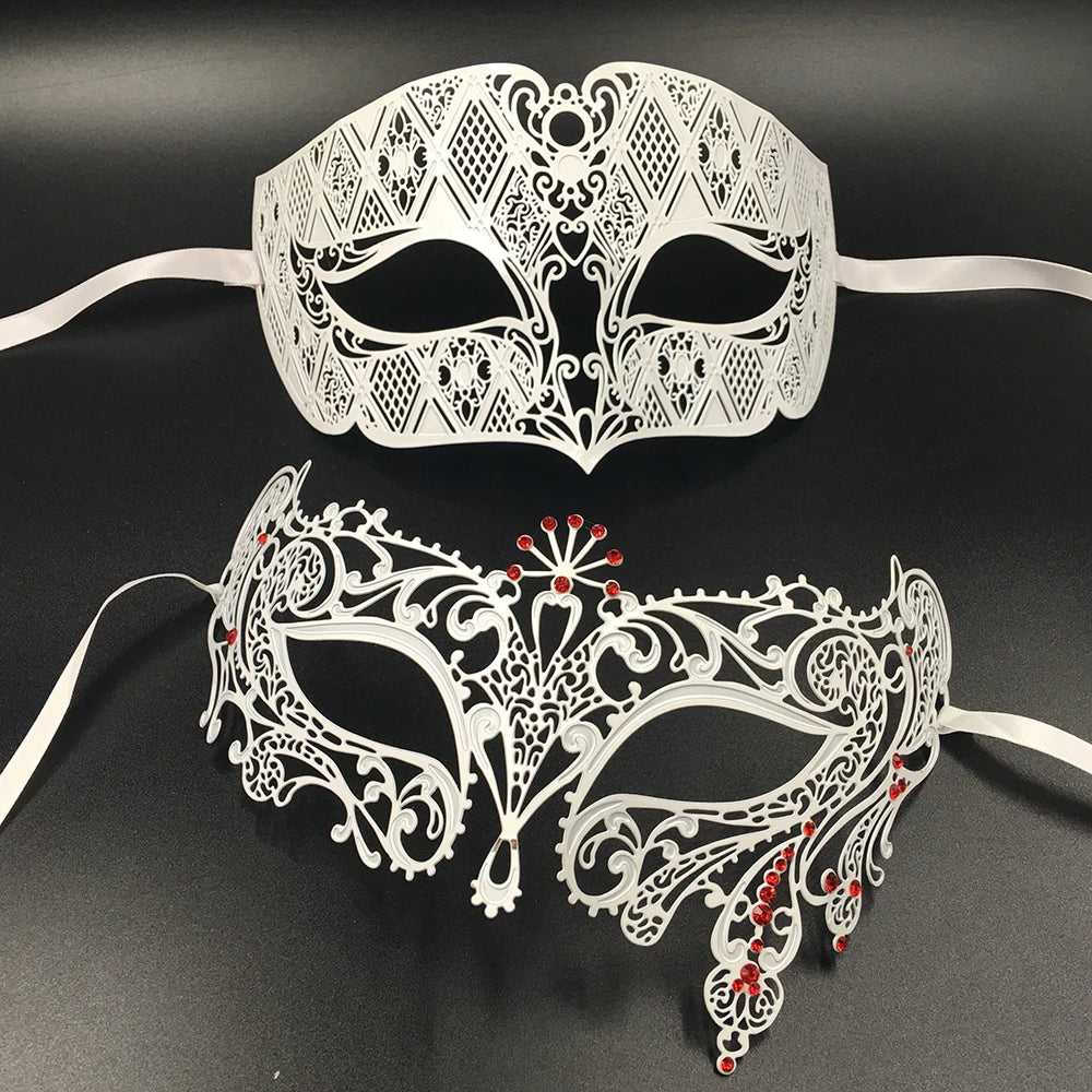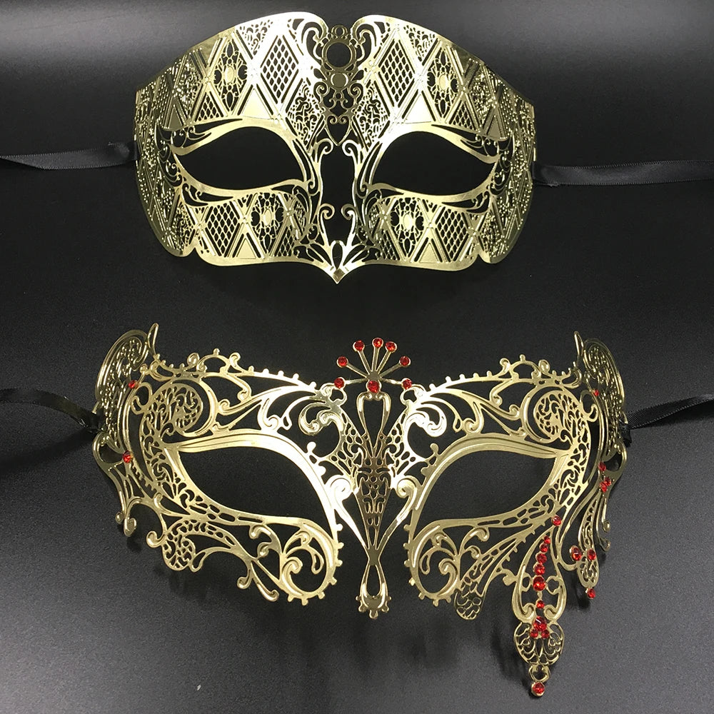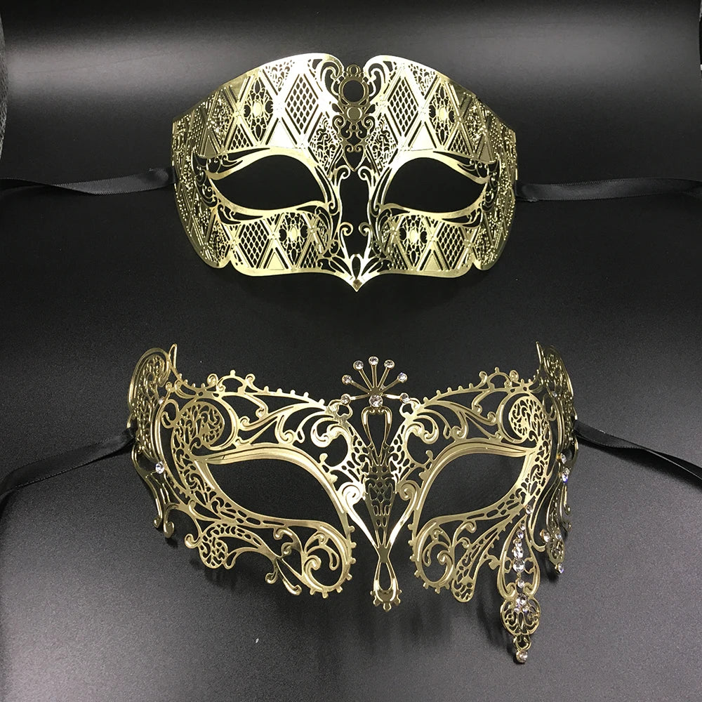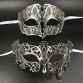 Silver Metal Filigree Men Women Venetian Masquerade Ball Masks Lovers Gold Mardi Gras Shows Ball Wedding Couple Party Mask Set