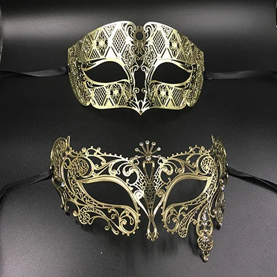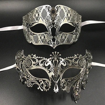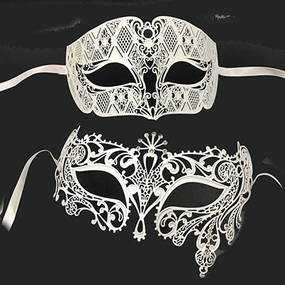 Add timeless elegance to your event with this stunning silver and gold metal filigree Venetian masquerade mask set, designed for both men and women. Perfect for couples, each mask features exquisite detailing and luxurious metallic finishes, making them ideal for masquerade balls, Mardi Gras celebrations, stage shows, weddings, and themed parties. Whether for a romantic evening or a festive gathering, these masks create a sophisticated and memorable look for any special occasion.