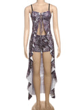 summer new women's clothing personality contrast color ultra-long sexy lace-up camisole shorts two-piece set