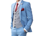 Ensemble 3 pièces veste bleu ciel, pantalon, gilet gris, smoking, blazer