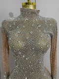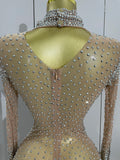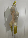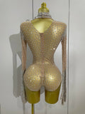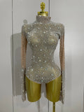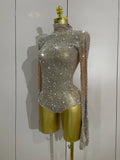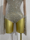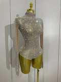 Sparkle Rhinestones Long Sleeve Gloves Stretch Bodysuits Women Evening Luxury Birthday Party Sexy Nightclub Stage Costumes