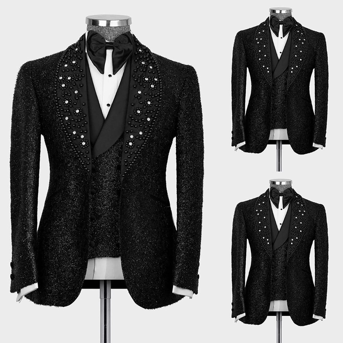 Costume homme noir scintillant 2 pièces blazer pantalon un bouton paillettes perles mariage marié travail tenue fête décontracté sur mesure