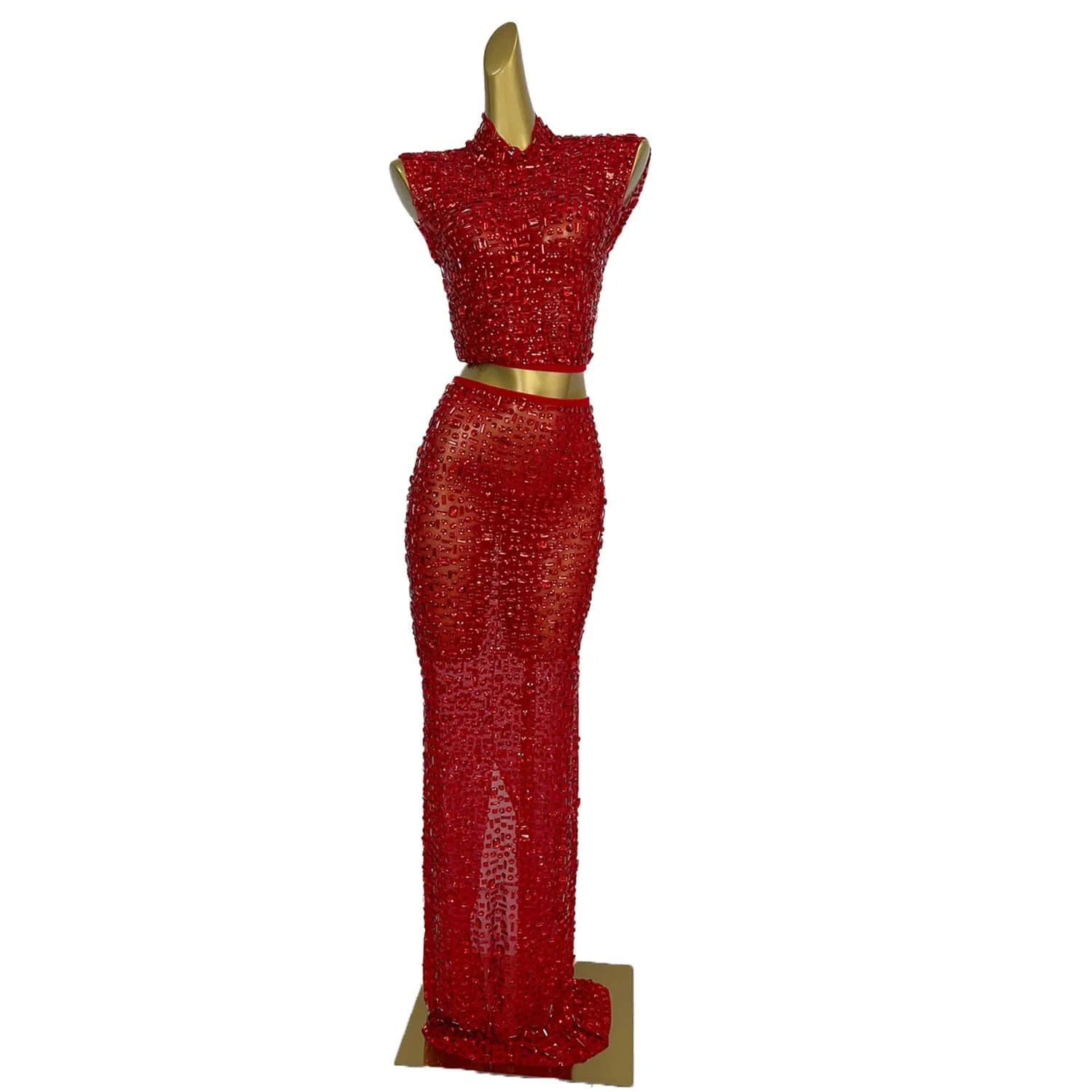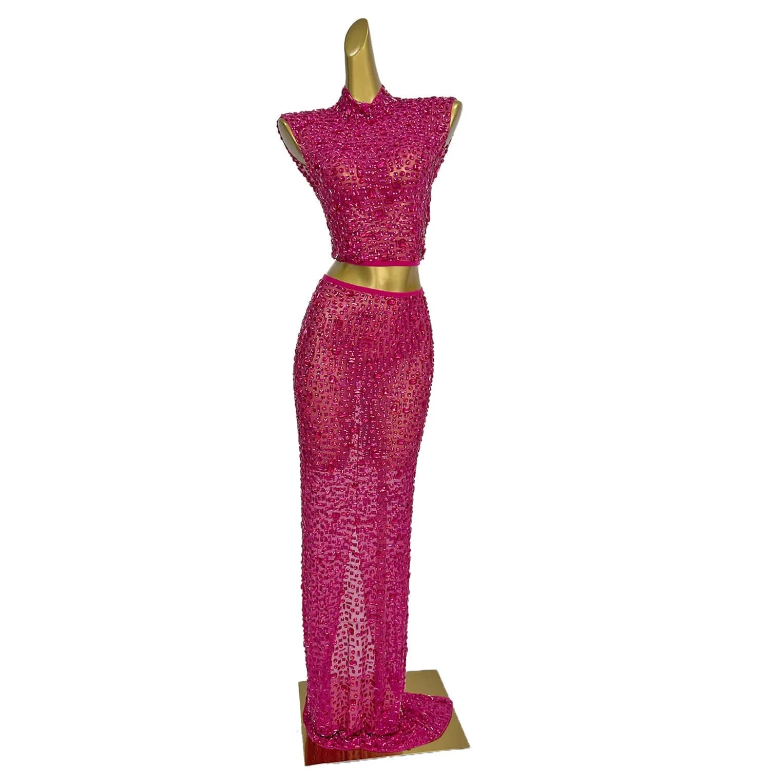 Turn heads and own every frame with this Sparkly Black Diamonds Crop Top + Long Skirt 2‑Piece Set — a glamorous two-piece ensemble designed for evening events, prom nights, birthday celebrations, and fashion photo shoots. The set combines a curve‑flattering crop top with a sweeping long skirt, both lavishly embellished with diamond‑like crystals that glimmer under lights to create an unforgettable, red‑carpet‑ready silhouette.