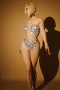 Sparkly Diamonds Jumpsuit Women Performance Dancer Costume Mesh Stretch Rompers Party Celebrate Outfit Stage Club Wear