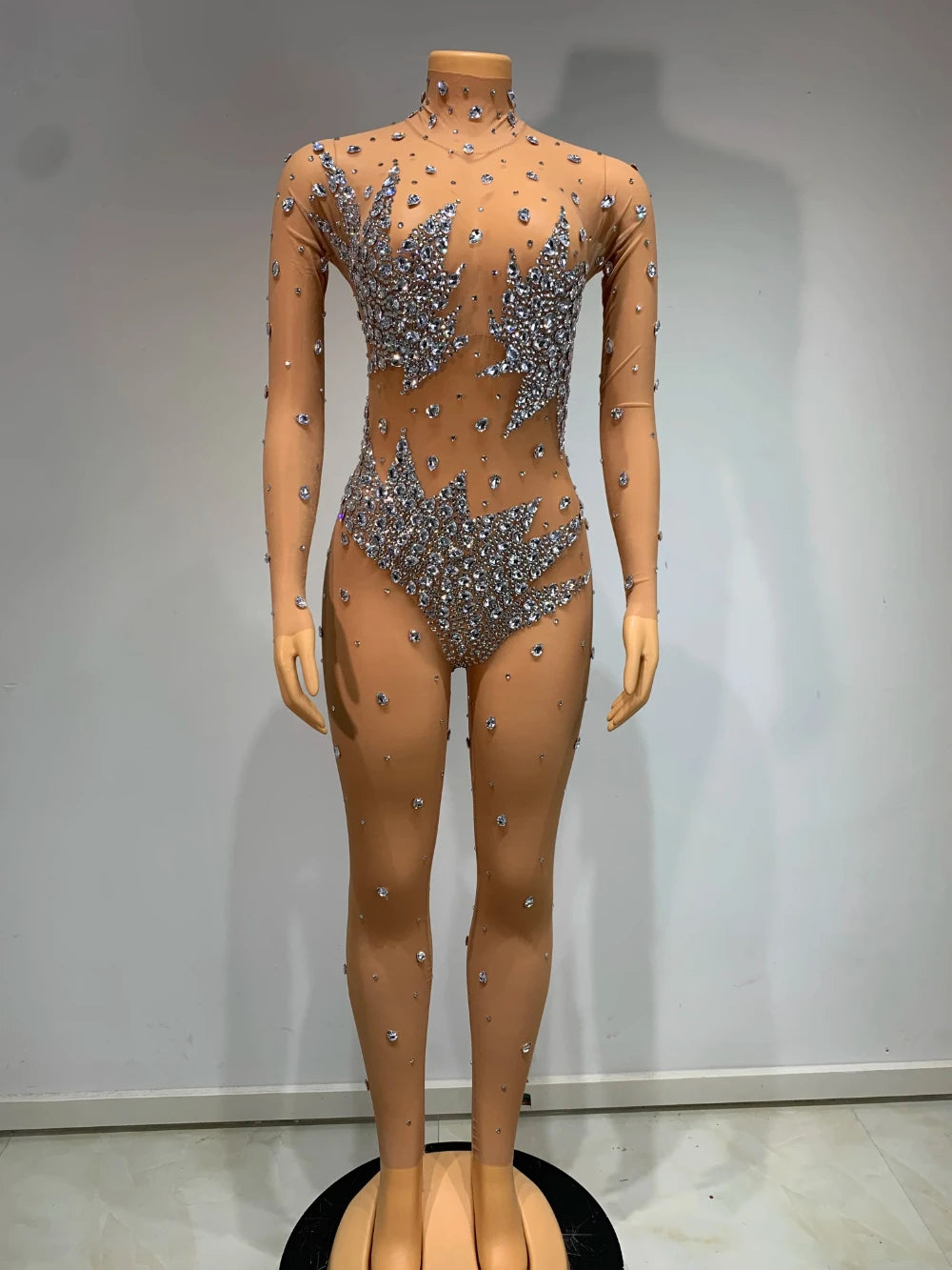 Get ready to shine at any event with this Sparkly Diamonds Jumpsuit, designed especially for women who love to perform and stand out. Embellished with glittering rhinestones, this dazzling mesh stretch romper hugs your curves and offers all-day comfort. Perfect for dancers, stage performances, Halloween parties, or clubwear, it’s a head-turning celebration outfit that’s both seductive and stylish. Make a memorable impression at your next show, festival, or costume event with this eye-catching stage ensemble
