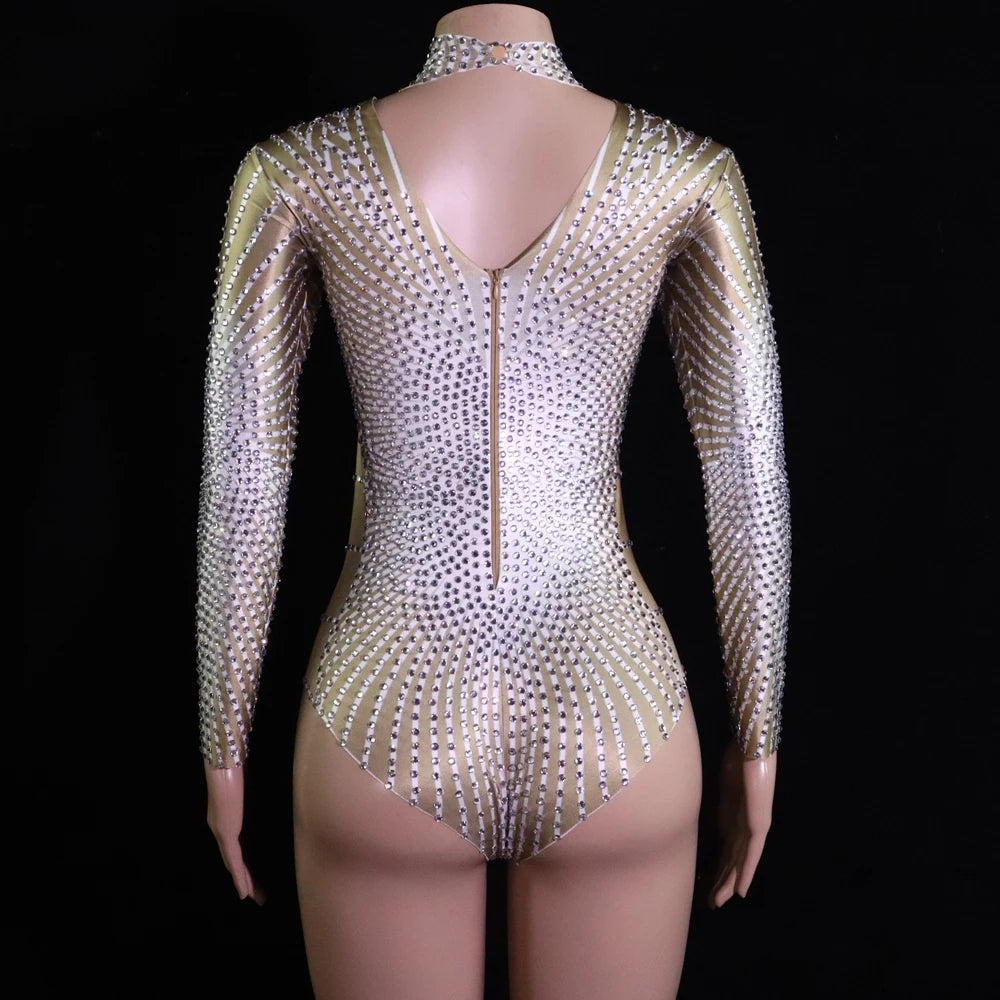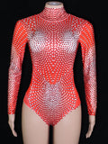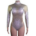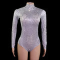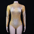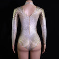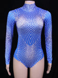 Sparkly Full Rhinestones Long Sleeve Leotard Nightclub Singer Dancer Stage Wear Performance Dance Costume Party Bodysuit