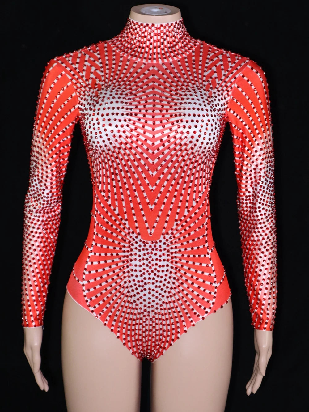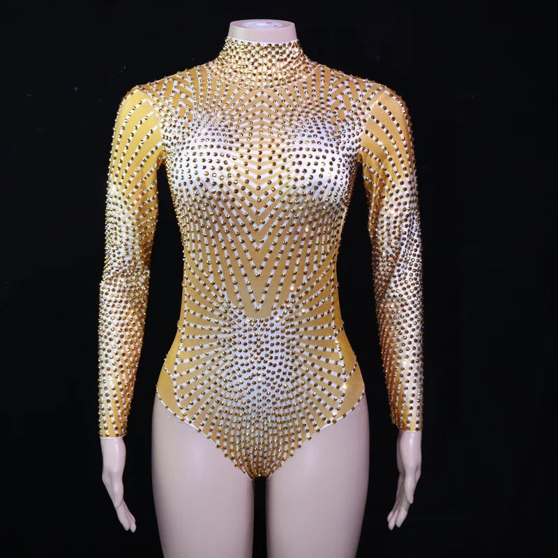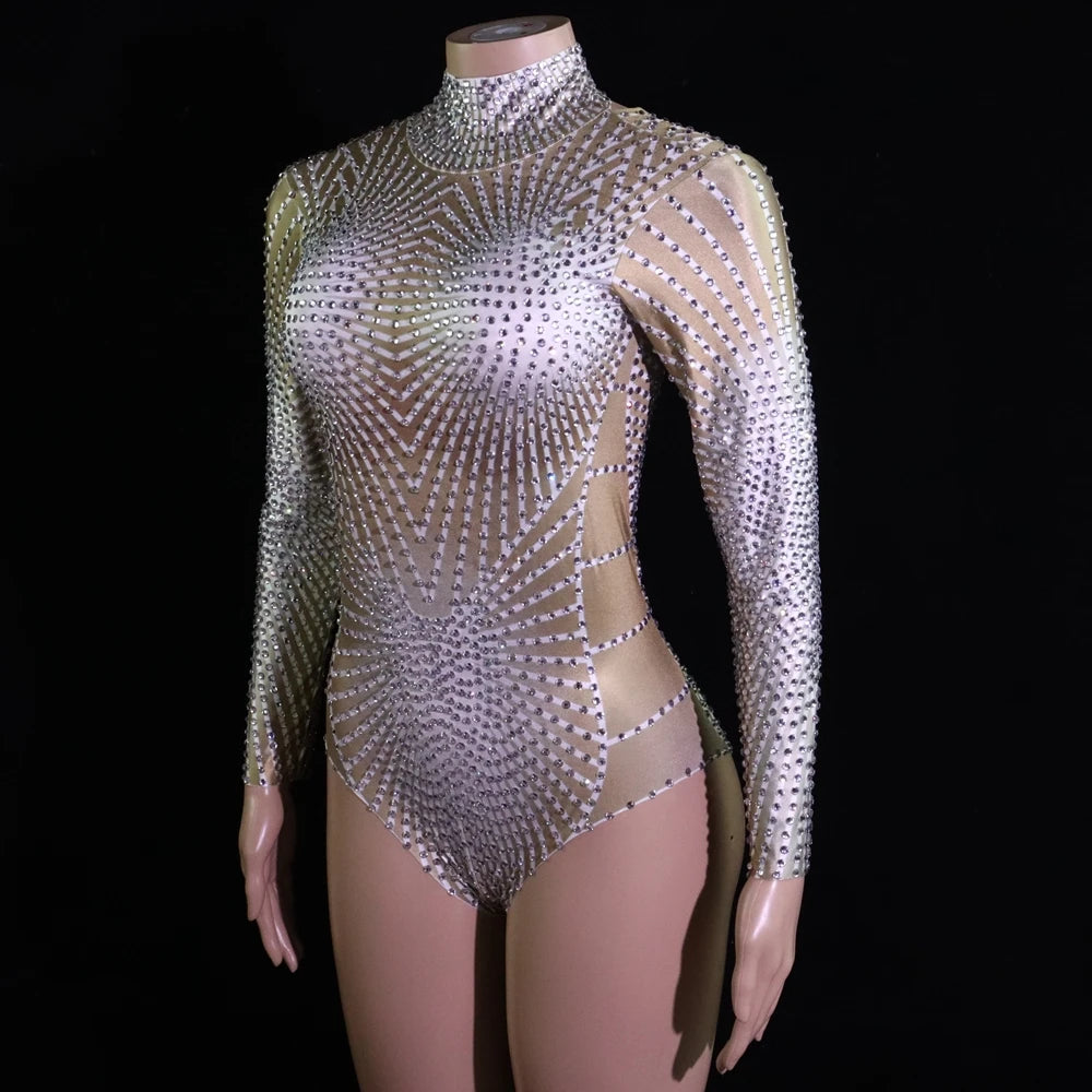 Shine bright at every event with this Sparkly Full Rhinestones Long Sleeve Leotard, the ultimate statement piece for nightclub performers, singers, and dancers. Covered in dazzling rhinestones, this high-impact bodysuit ensures you capture every spotlight on stage. The sleek, slim fit and elegant long sleeves offer both comfort and sophistication, making it perfect for dance performances, parties, and special occasions. Step confidently onto any stage and command attention in this glamorous, show-stopping nightclub costume.