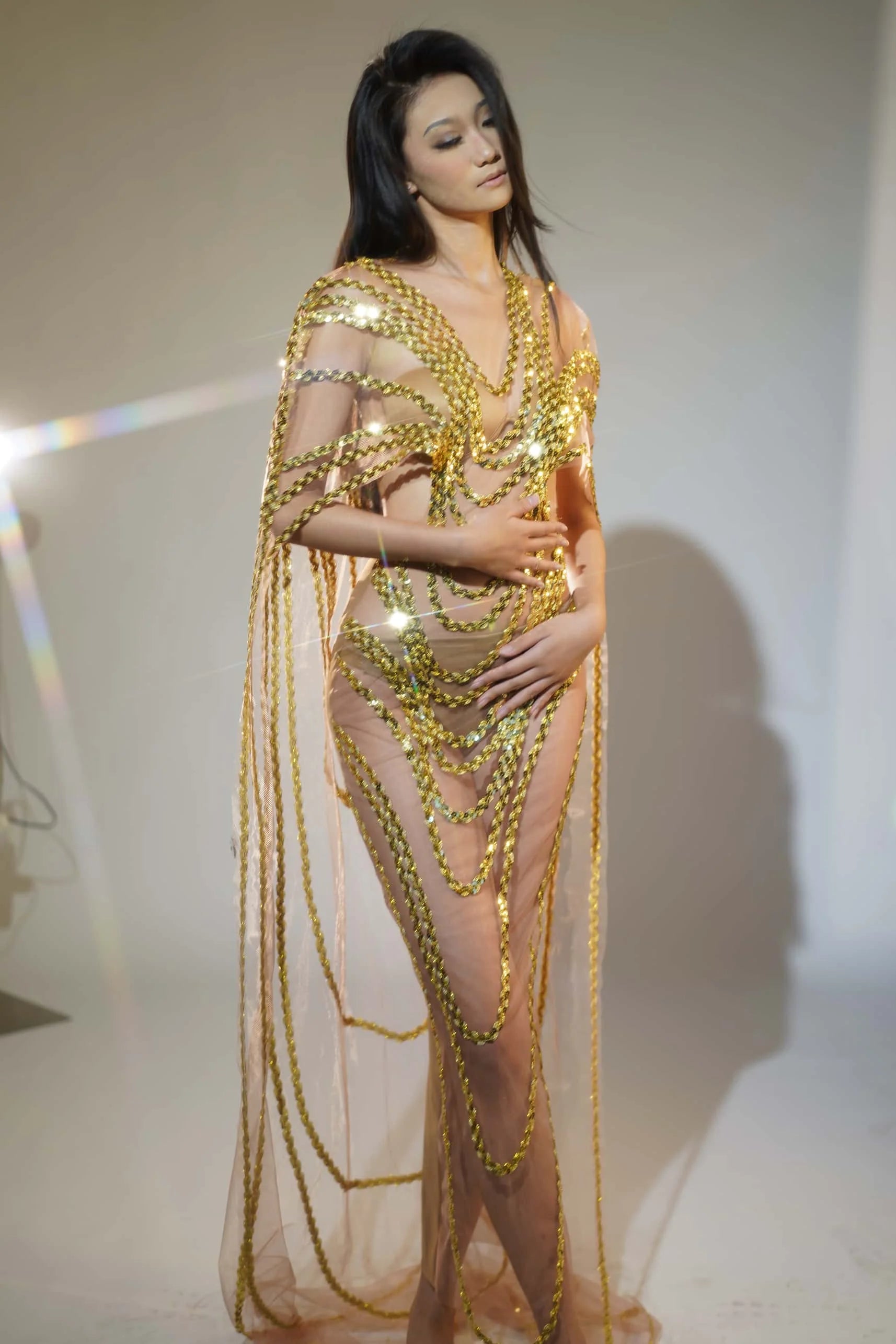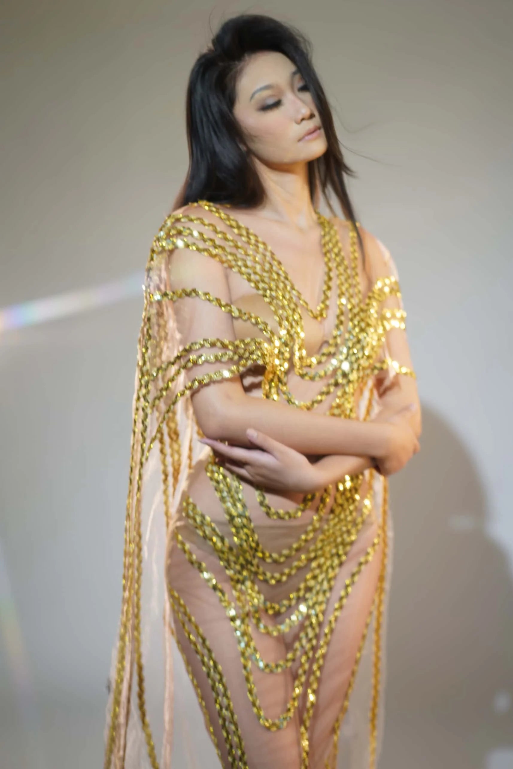 Elevate every entrance with this Sparkly Gold Sequins Mesh Celebrate Evening Prom Gown — a long, show‑stopping dress designed to shimmer under lights. Combining dense gold sequins with sheer mesh panels and a sculpting silhouette, this gown is ideal for birthdays, prom, stage performances, music videos, and any event where you need maximum radiance.