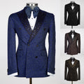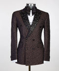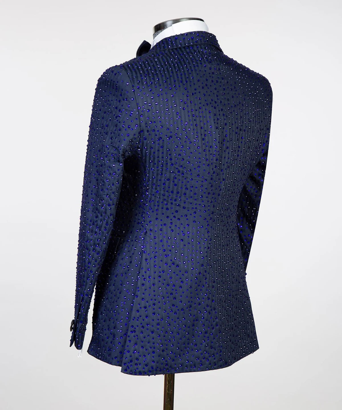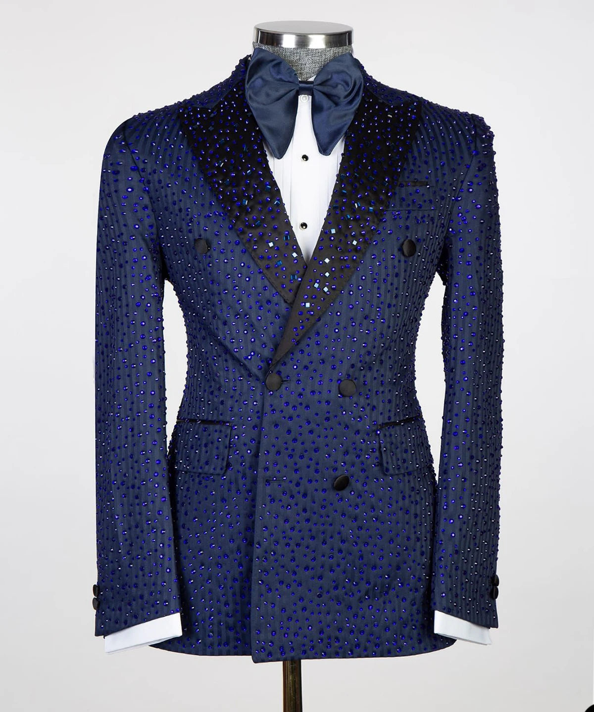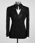 Brillez de mille feux dans ce costume de mariage pour homme scintillant, orné de revers pointus et de perles et de cristaux. Cet ensemble smoking deux pièces, composé d'un blazer et d'un pantalon éblouissants, est parfait pour les bals de fin d'année, les soirées et les mariages. Confectionné sur mesure pour une coupe parfaite, ce costume vous fera assurément briller avec style.