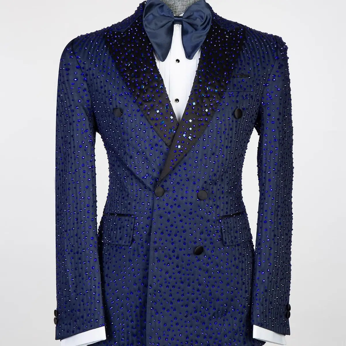Costume de mariage scintillant pour homme, smoking à revers pointus, perles et cristaux, 2 pièces (blazer + pantalon), pour bal de promo, soirée, sur mesure