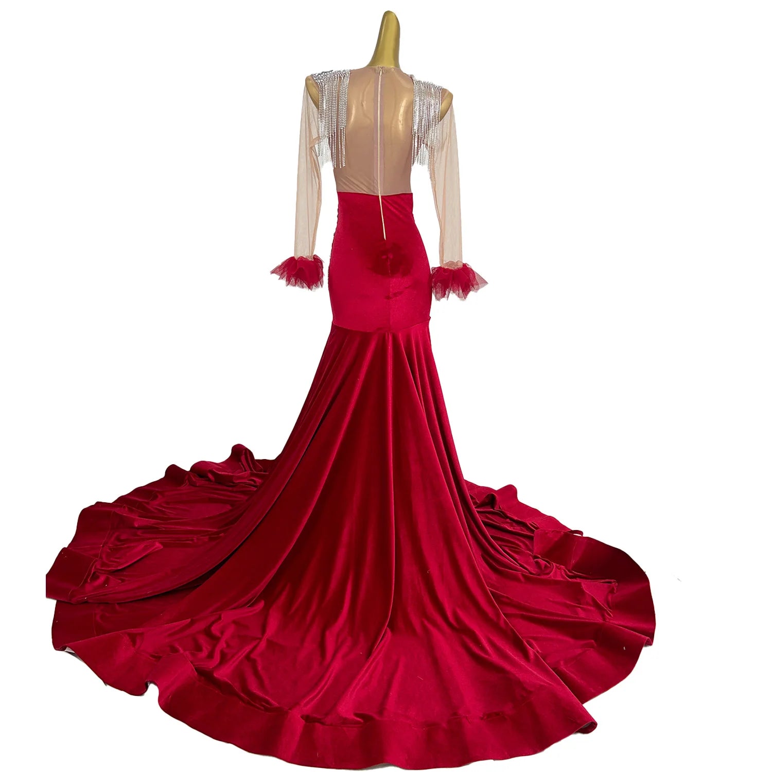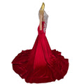 Sparkly Red Diamonds Mermaid Prom Dresses Women Glitter Sequins Bead Crystal Rhinestones Vestidos Birthday Party Dress
