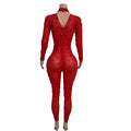 Combinaison fourreau sexy en maille avec strass rouges scintillants, tenue de soirée, de spectacle, de discothèque, de chanteur, de danseuse, tenue de scène