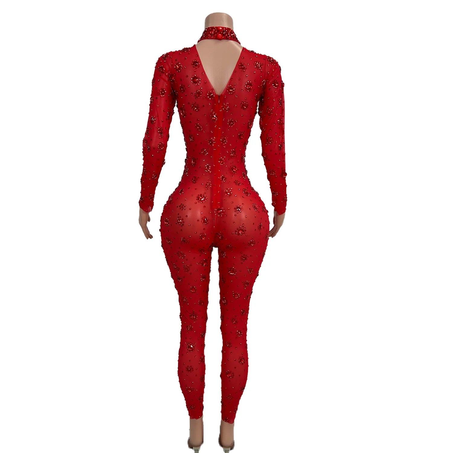 Faites tourner les têtes lors de votre prochain événement avec cette combinaison rouge scintillante ornée de strass, dotée d'une coupe fourreau en résille sexy pour une allure spectaculaire. Conçue pour un glamour absolu, cette superbe combinaison une-pièce est parfaite pour les soirées, les représentations sur scène et les sorties en boîte de nuit. Que vous soyez chanteuse, danseuse ou que vous aimiez simplement faire une entrée remarquée, ce costume accrocheur vous permettra de vous démarquer avec assurance et style.