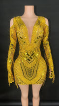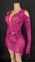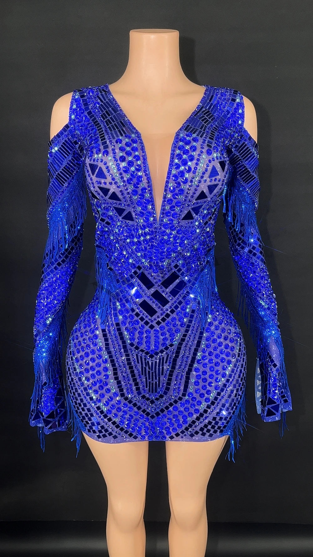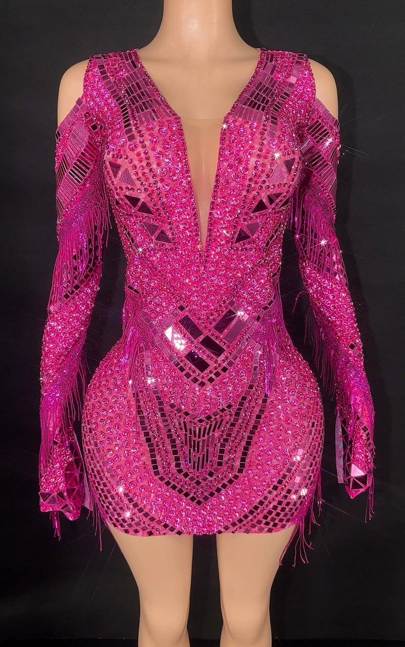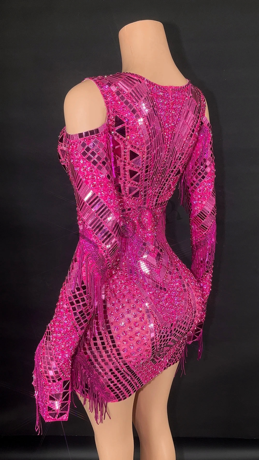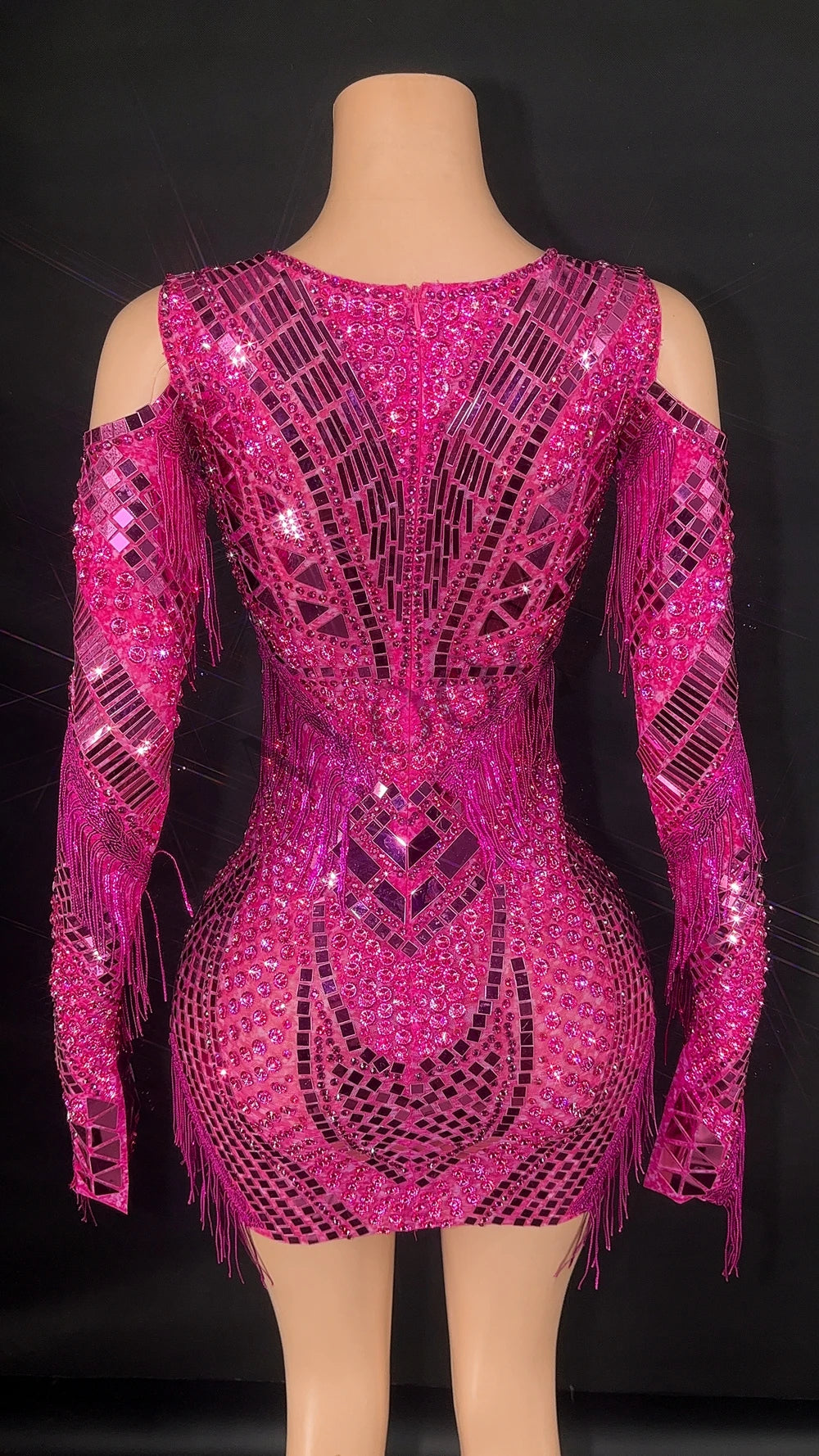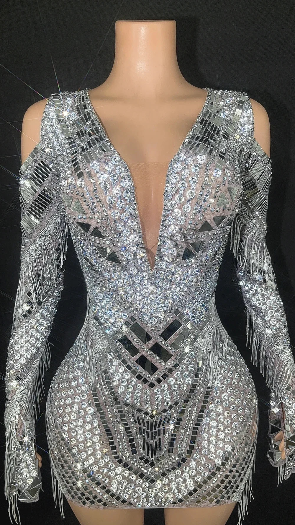 Brillez de mille feux dans cette robe courte éblouissante, ornée de strass scintillants, de paillettes effet miroir et de pompons fantaisie. Avec sa transparence sexy, cette robe est parfaite pour les femmes qui souhaitent affirmer leur style lors de soirées, bals de fin d'année, fêtes, anniversaires ou séances photos. Captez tous les regards et créez des moments inoubliables avec cette tenue époustouflante.