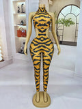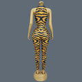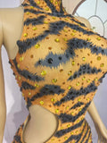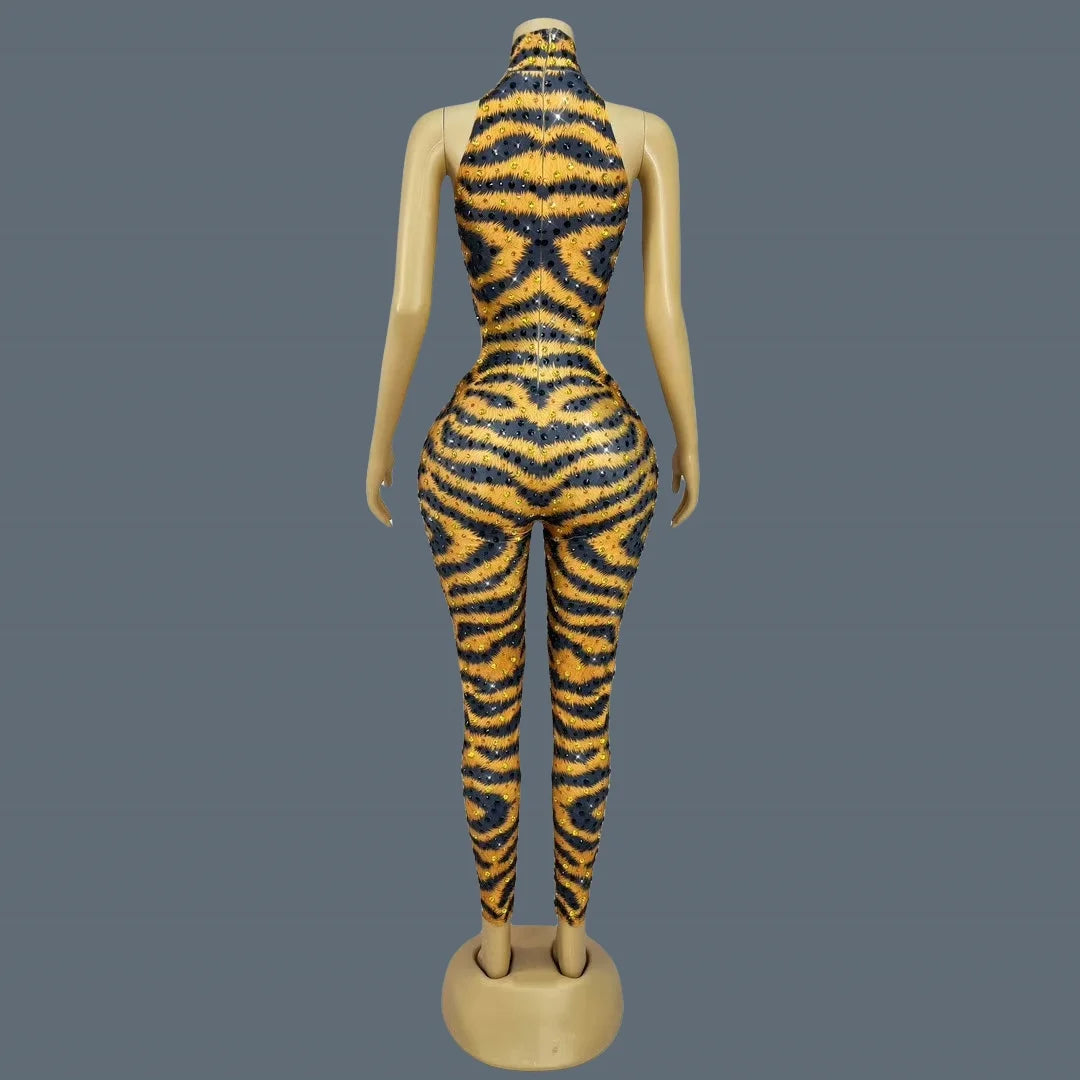 Sparkly Rhinestone Tiger Pattern Tight Fitting Jumpsuit Night Party Sexy Stage Performance Sleeveless Skinny Outfit