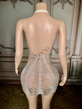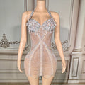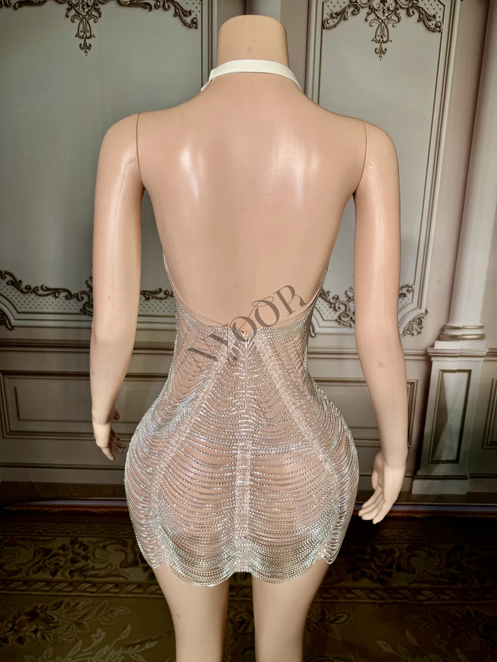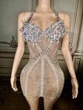 Robe courte transparente en maille sexy avec strass scintillants et diamants pour femme, tenue de soirée, de bal, d'anniversaire